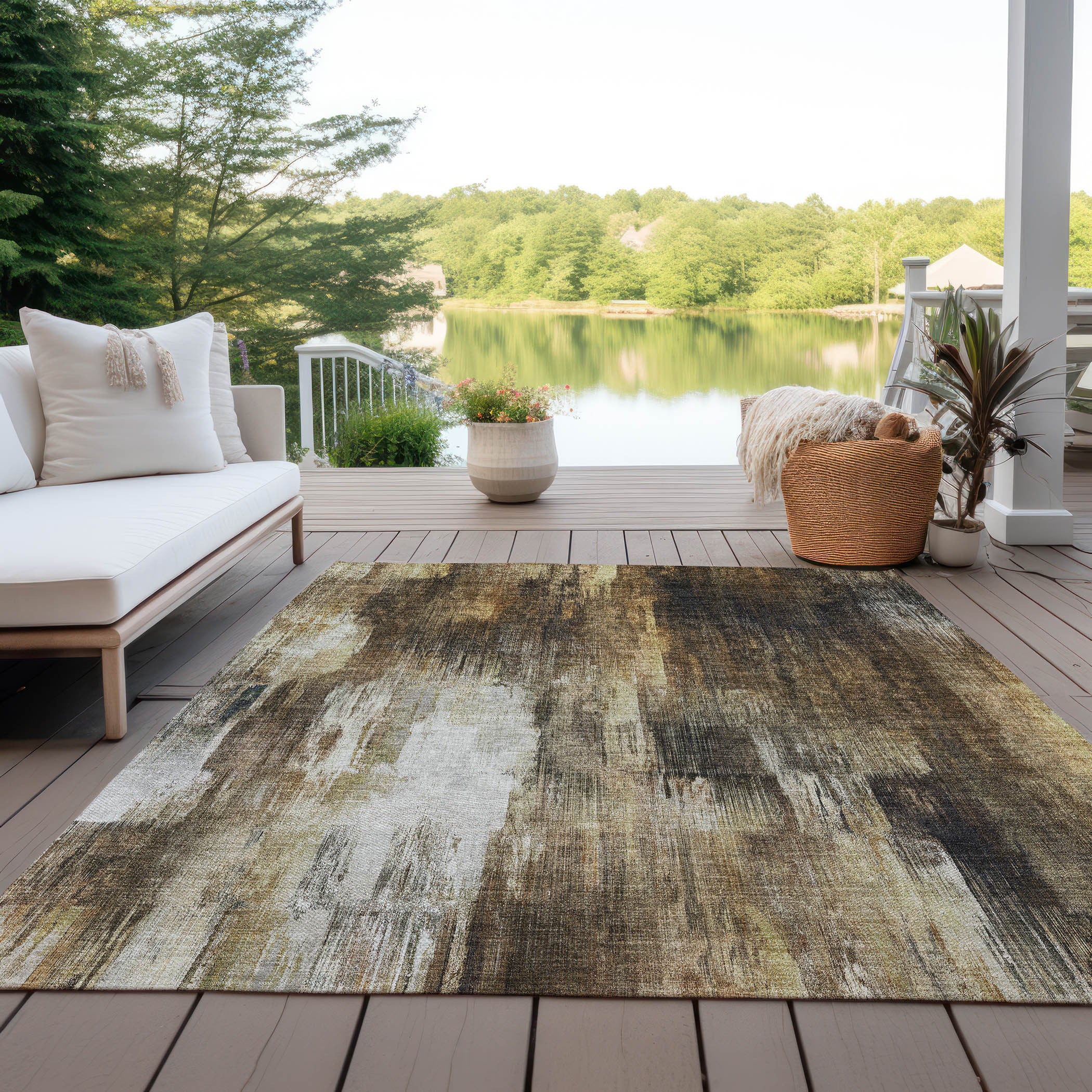 3' X 5' Chocolate Abstract Washable Non Skid Indoor Outdoor Area Rug
