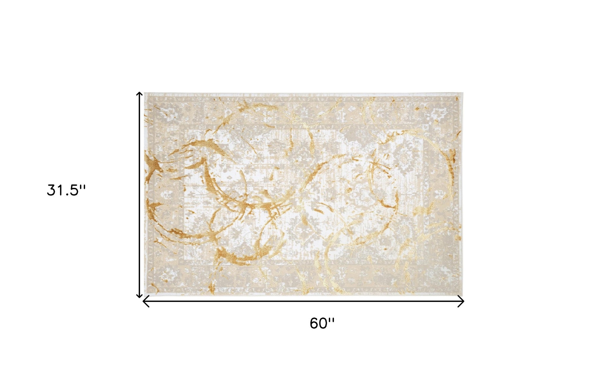 Set an inviting tone in your space with this 3-foot x 5-foot gold abstract area rug. This...
