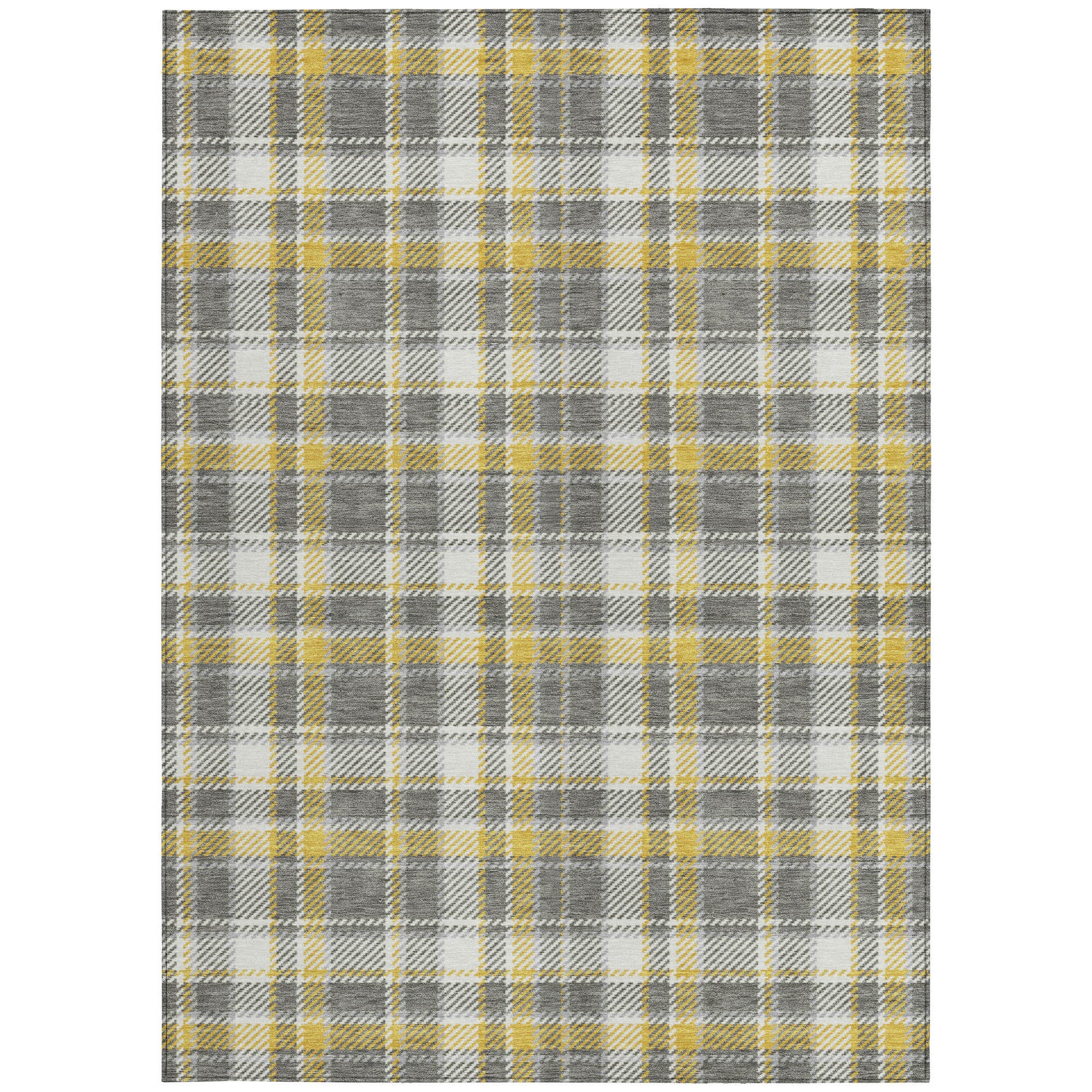 3' X 5' Gray Yellow and White Plaid Washable Non Skid Indoor Outdoor Area Rug