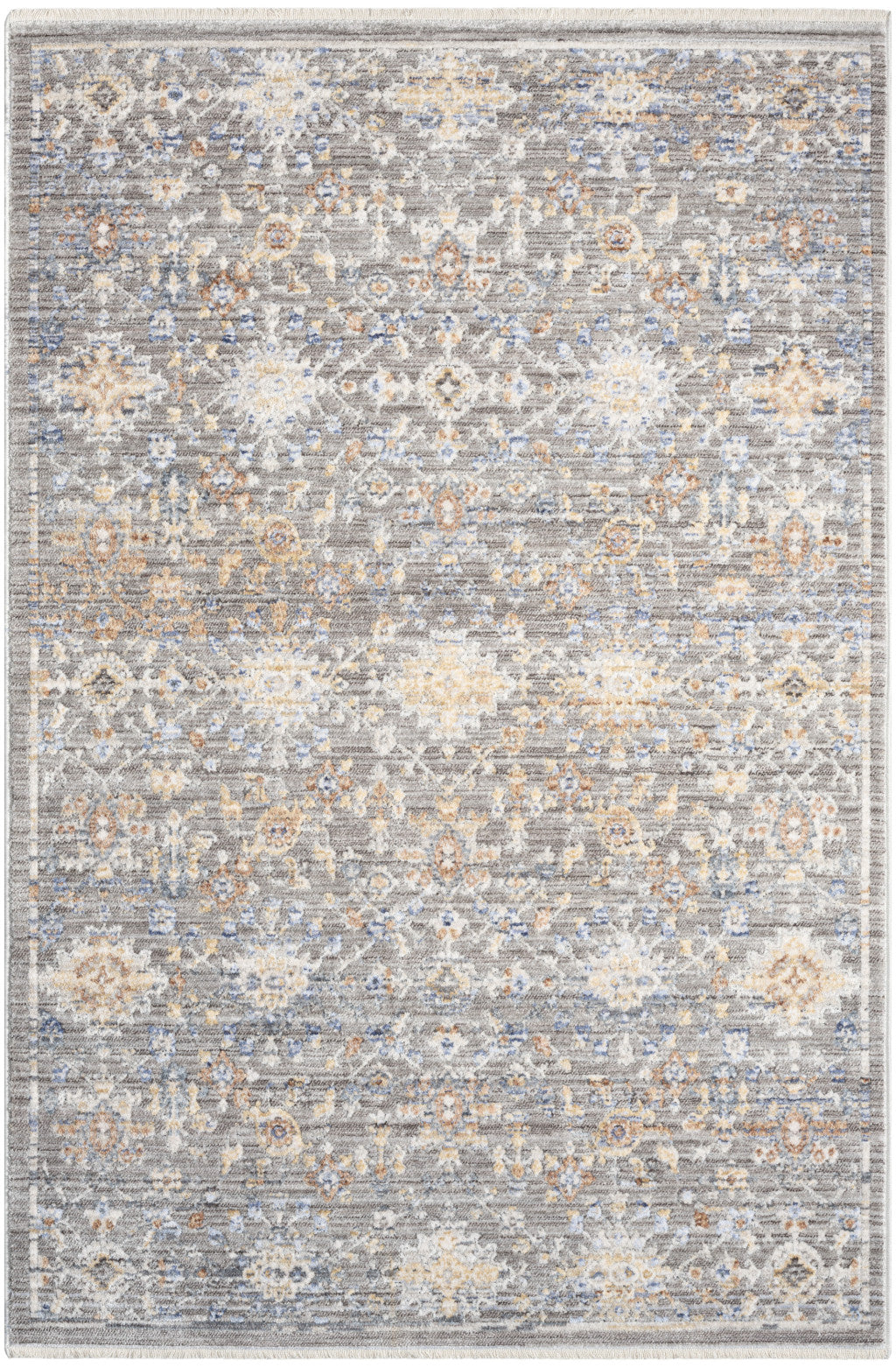 3' X 5' Ivory Blue and Gray Oriental Power Loom Distressed Area Rug