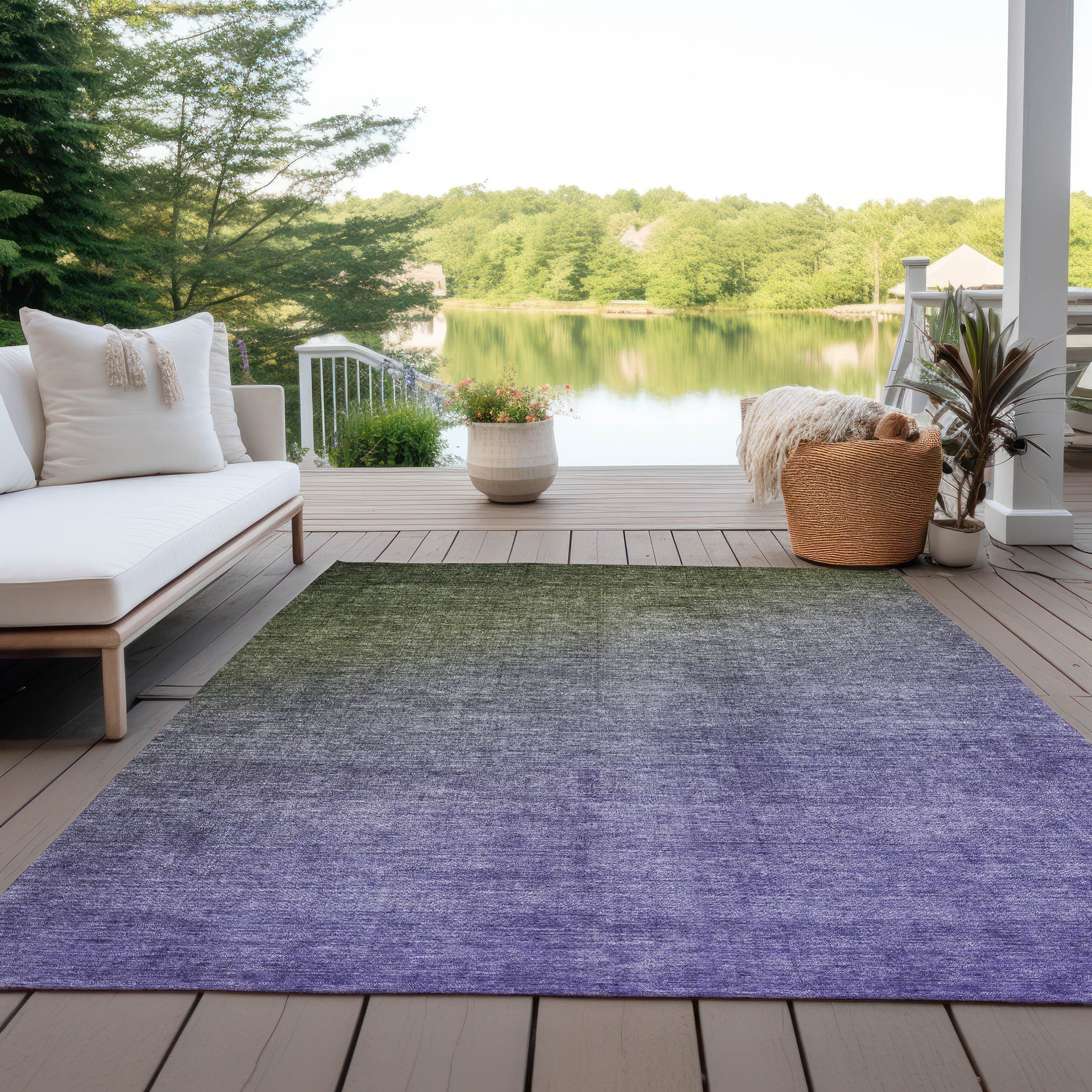 3' X 5' Olive Green and Purple Ombre Washable Non Skid Indoor Outdoor Area Rug