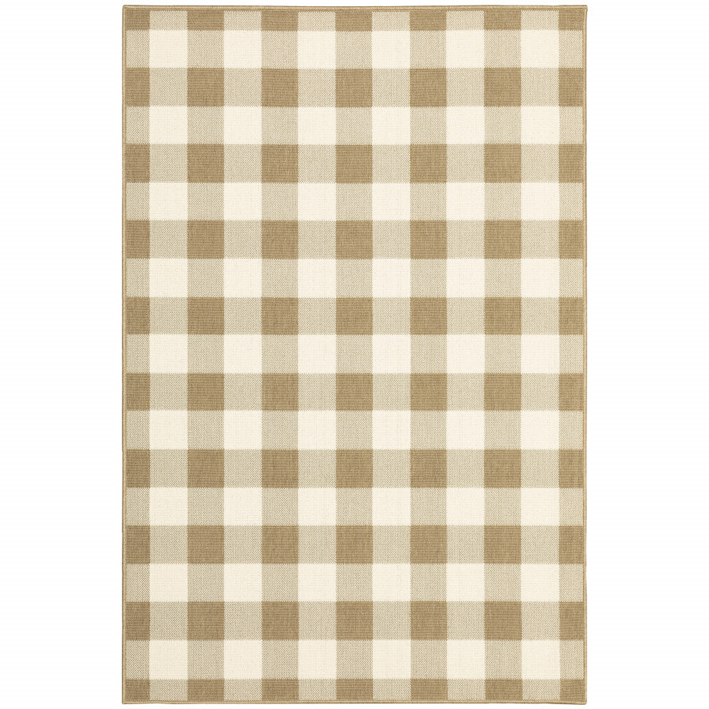 3' X 5' Tan Geometric Stain Resistant Indoor Outdoor Area Rug