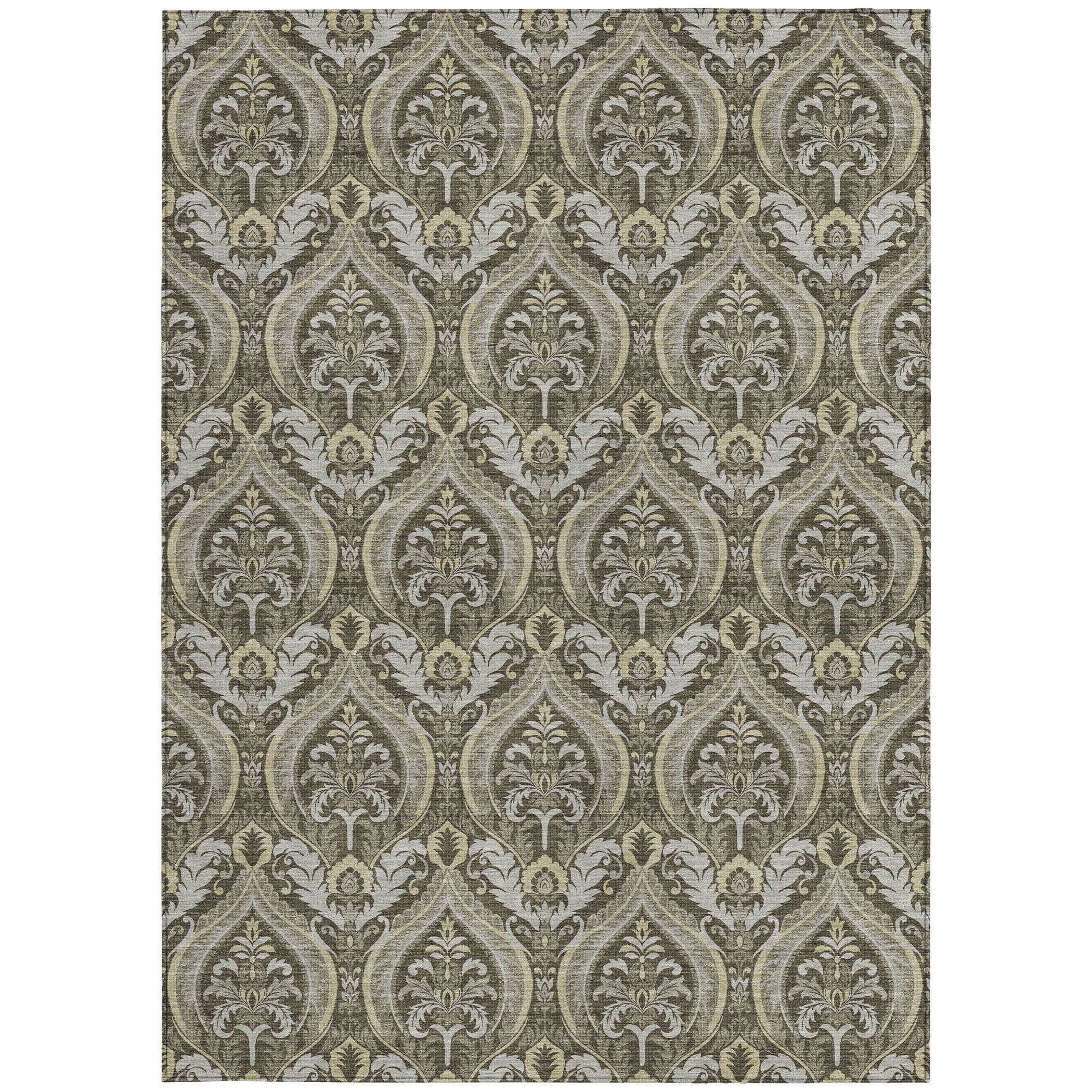 3' X 5' Taupe and Beige Damask Washable Non Skid Indoor Outdoor Area Rug