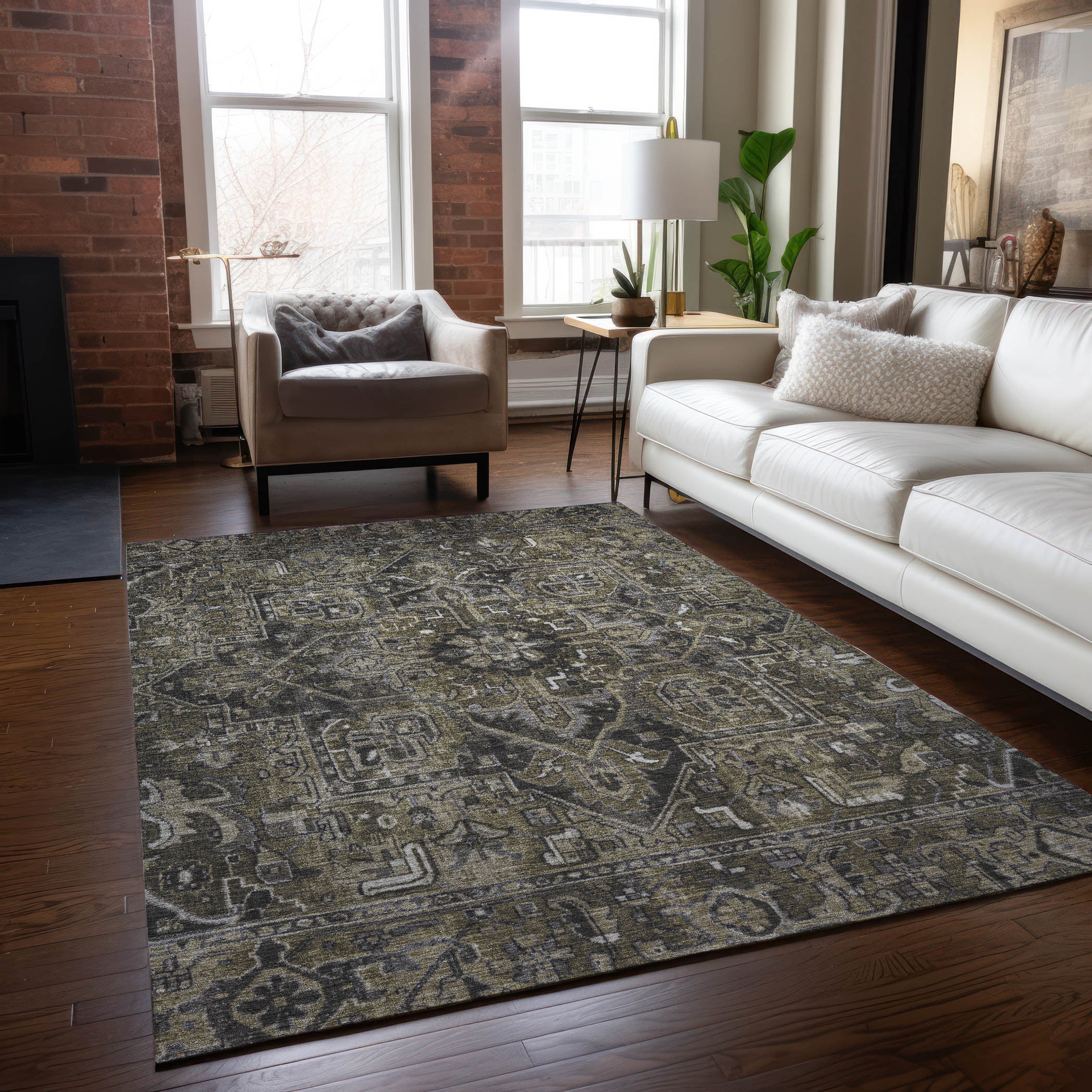 3' X 5' Taupe and Dark Taupe Oriental Washable Non Skid Indoor Outdoor Area Rug