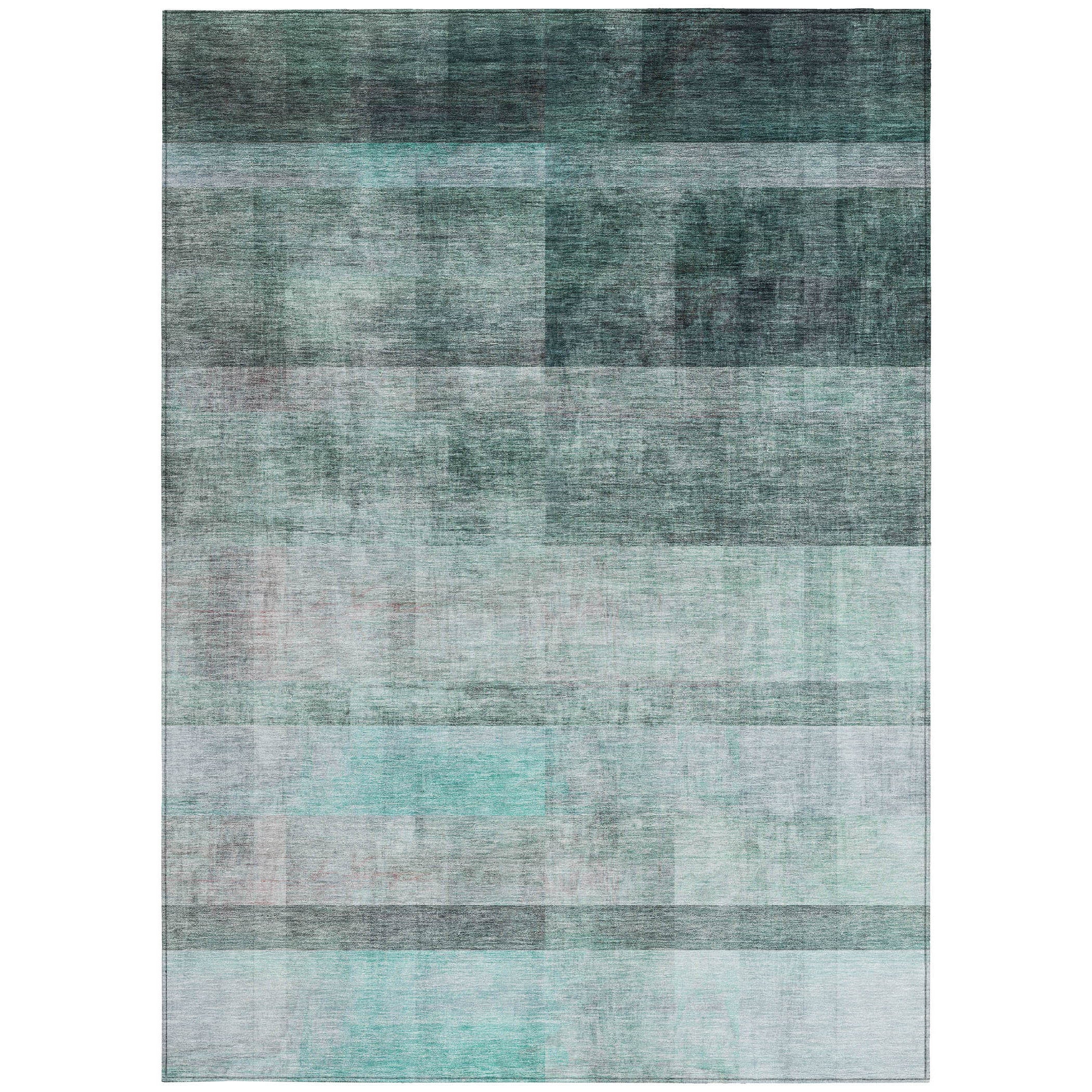 3' X 5' Teal Ombre Washable Non Skid Indoor Outdoor Area Rug