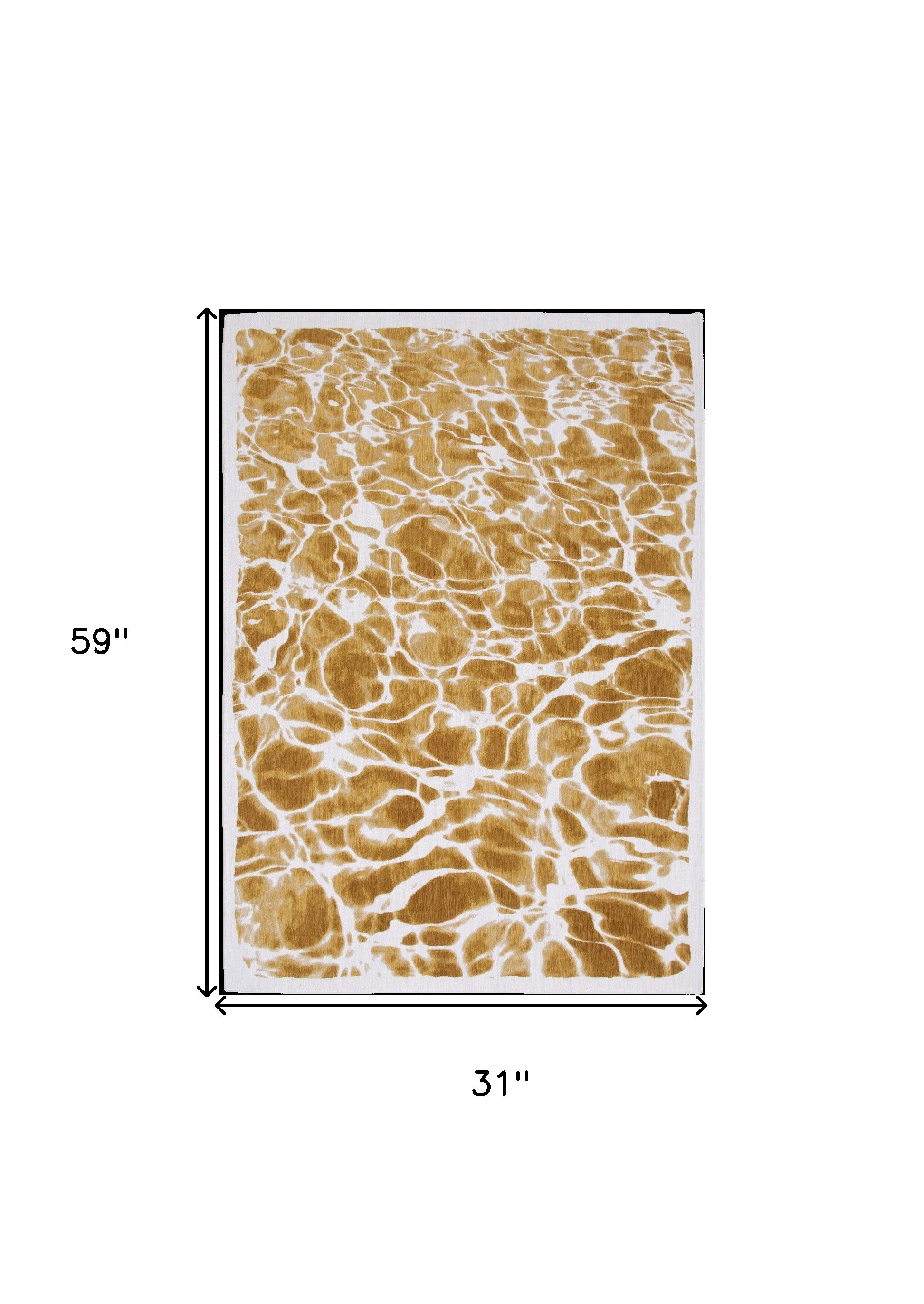3' X 5' Yellow and Brown Abstract Non Skid Area Rug