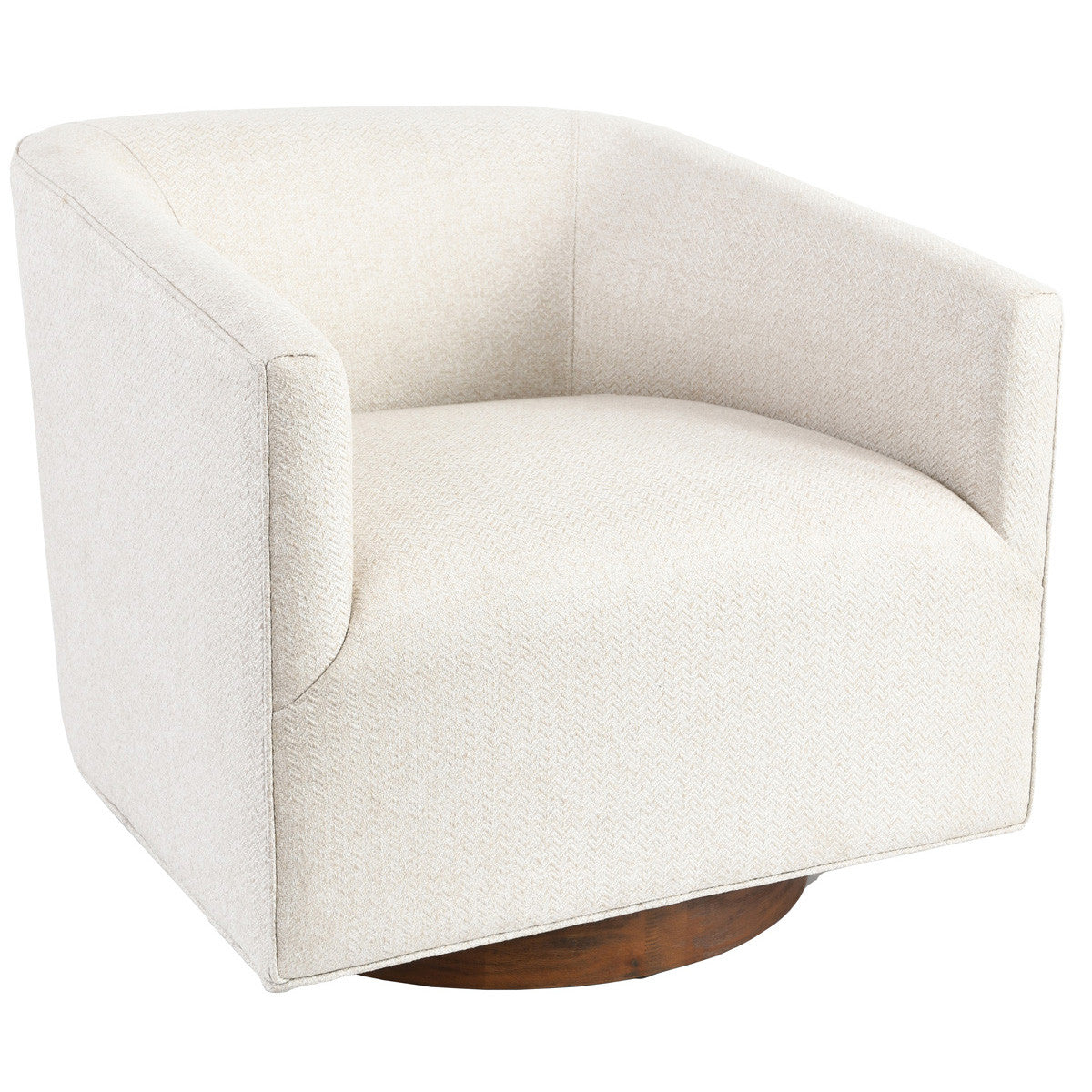 30" Beige and Wood Brown Polyester Chevron Swivel Barrel Chair