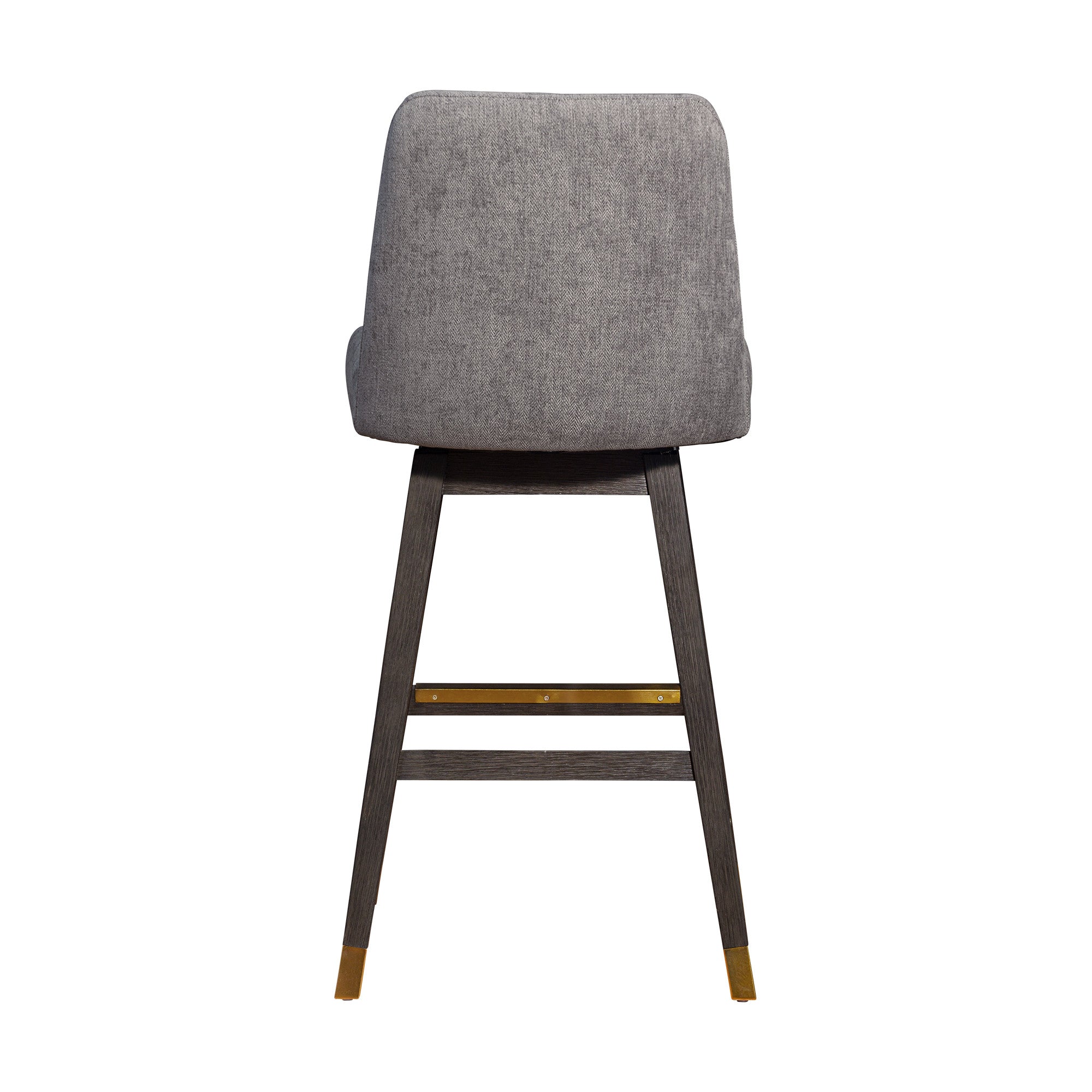 30" Brown And Gray Solid Wood Swivel Bar Height Bar Chair
