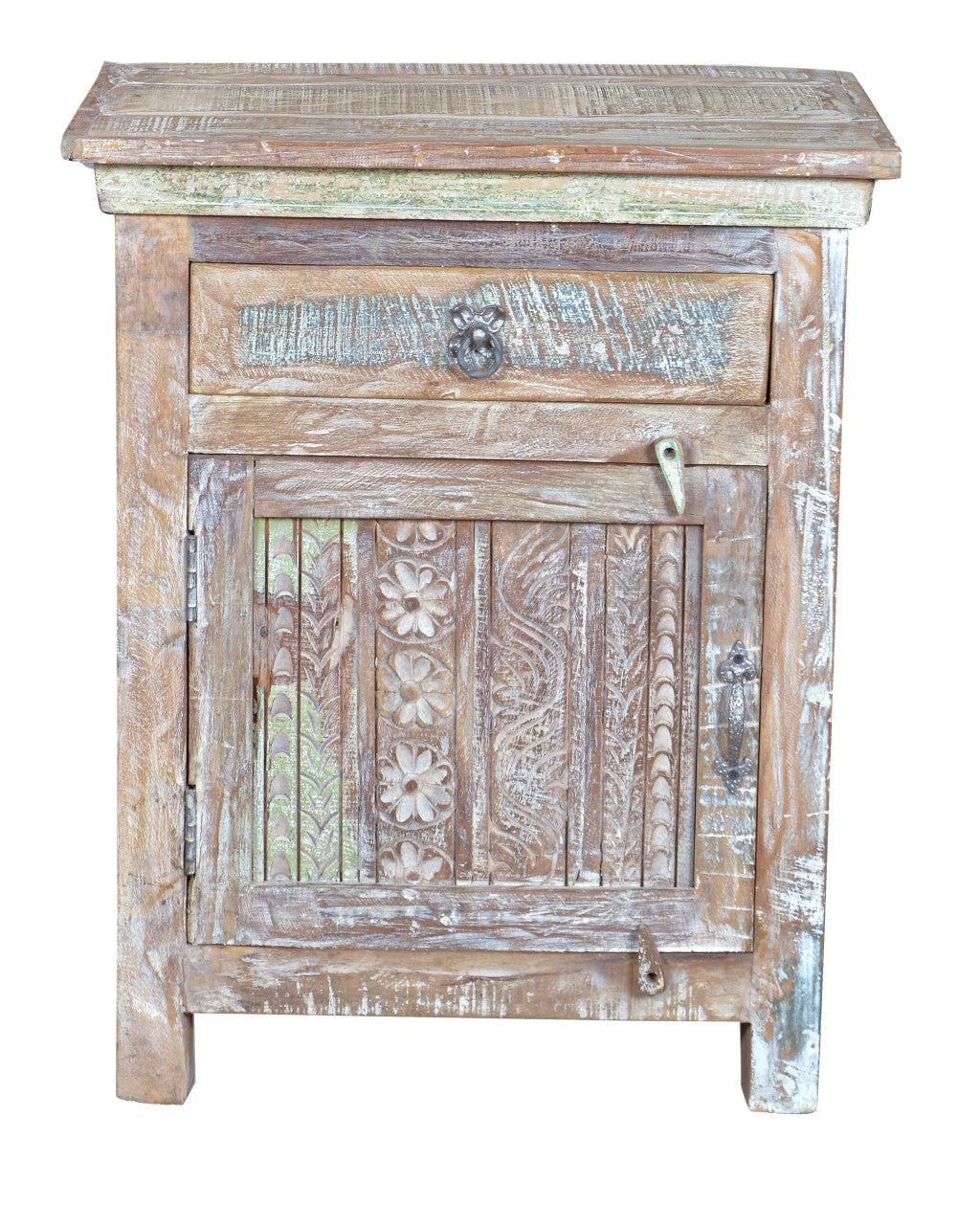 30" Distressed White One Drawer Embossed Floral Solid Wood Nightstand