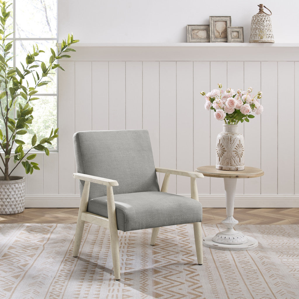 This 30-inch gray and cream linen arm chair will add a beautiful decorative accent to your decor....