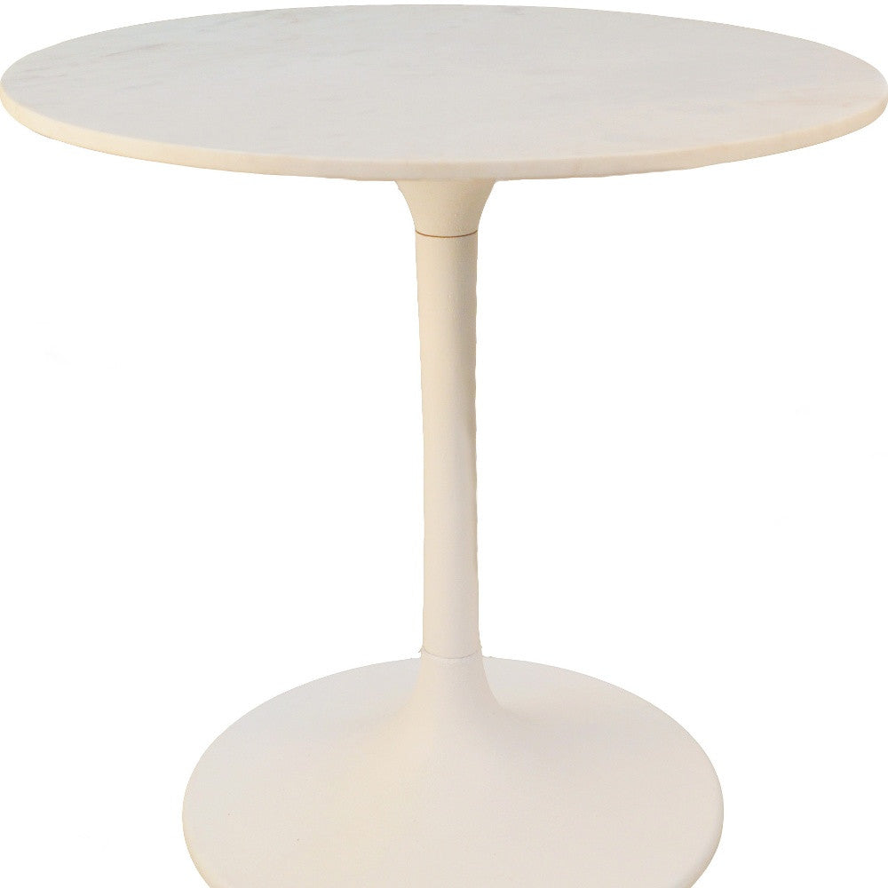 30" White Rounded Marble and Iron Pedestal Base Dining Table