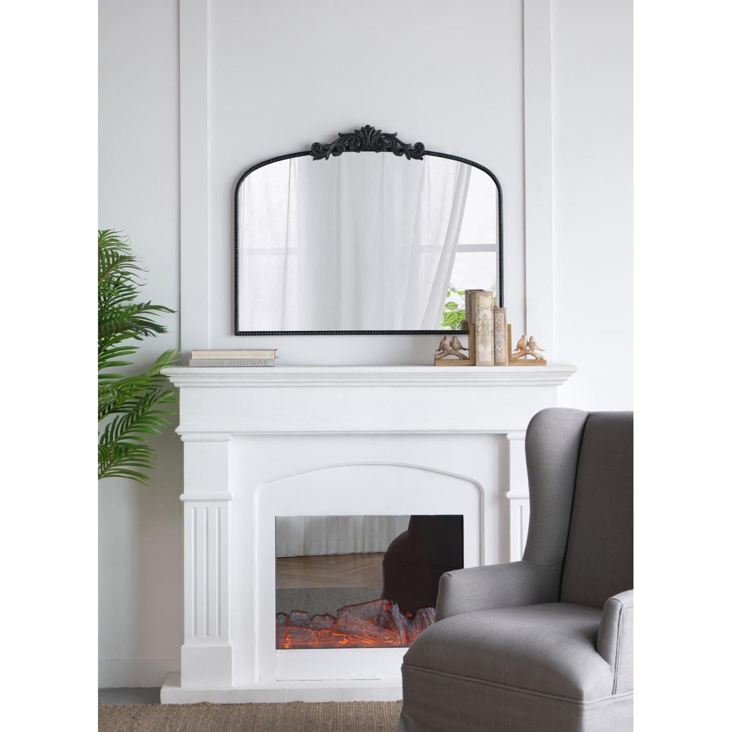 A delectable piece of furniture, this black crowned top framed accent mirror is an embellishment perfect for...