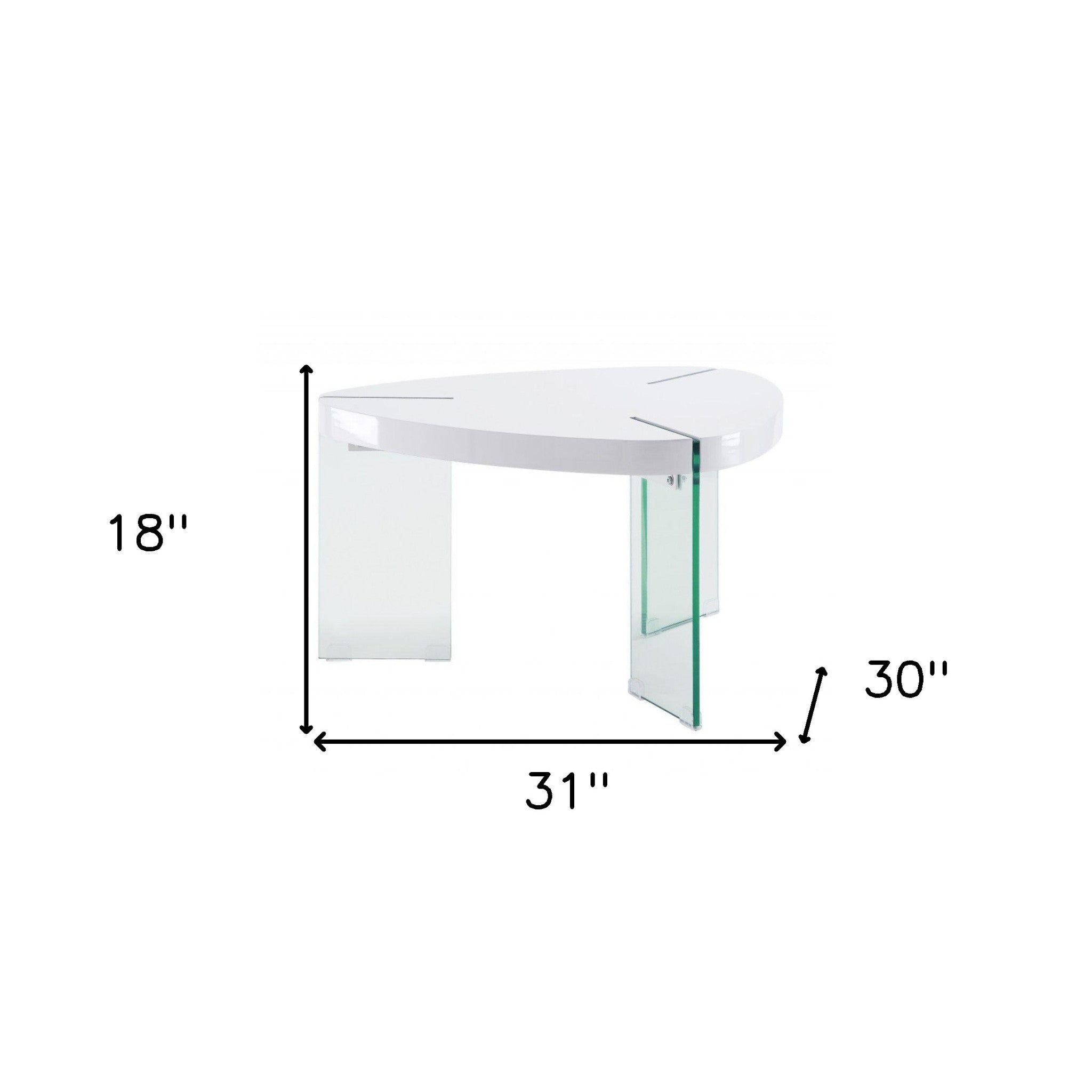31" Clear And White Manufactured Wood And Glass Free Form Coffee Table