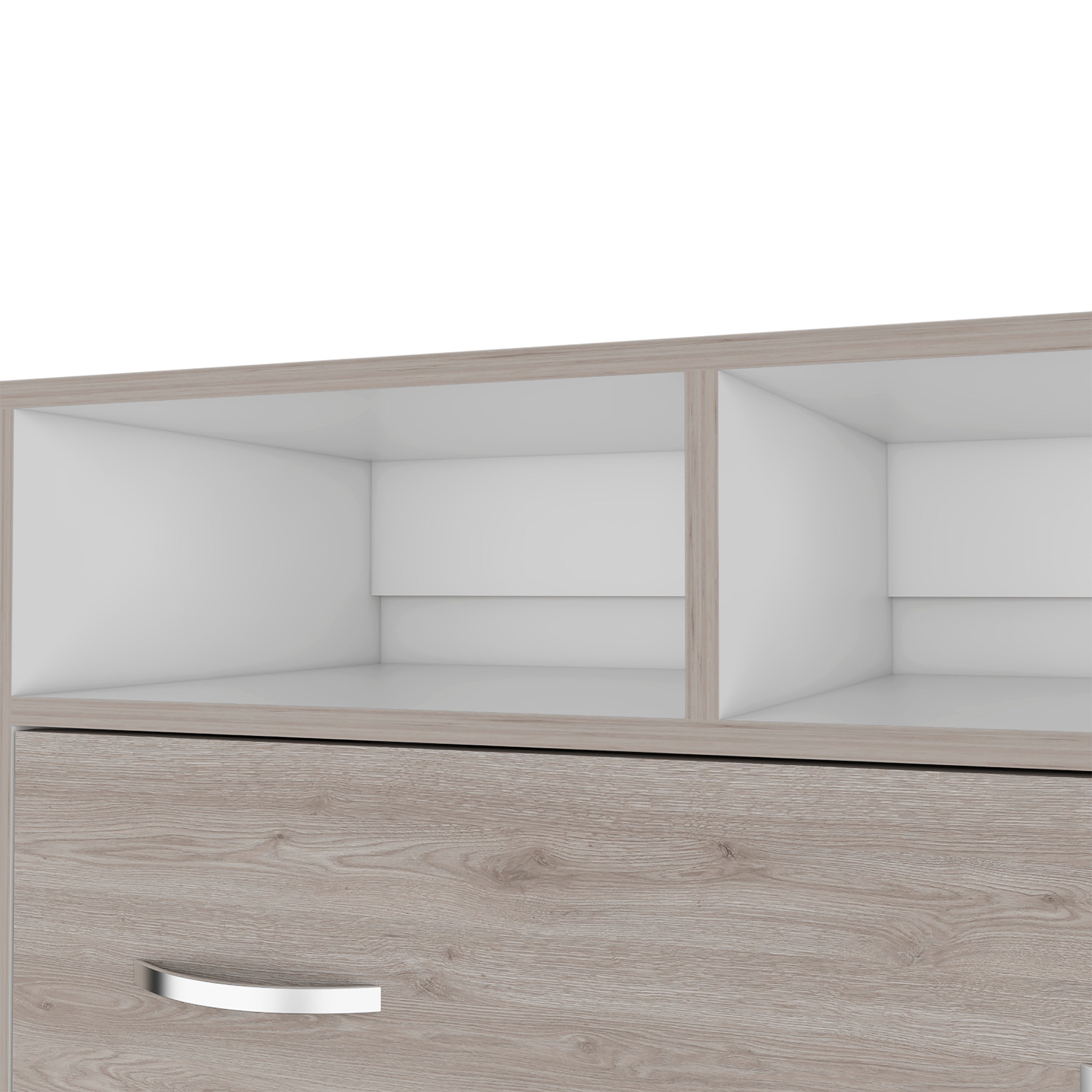 32" Light Gray Two Drawer Dresser With Open Shelving