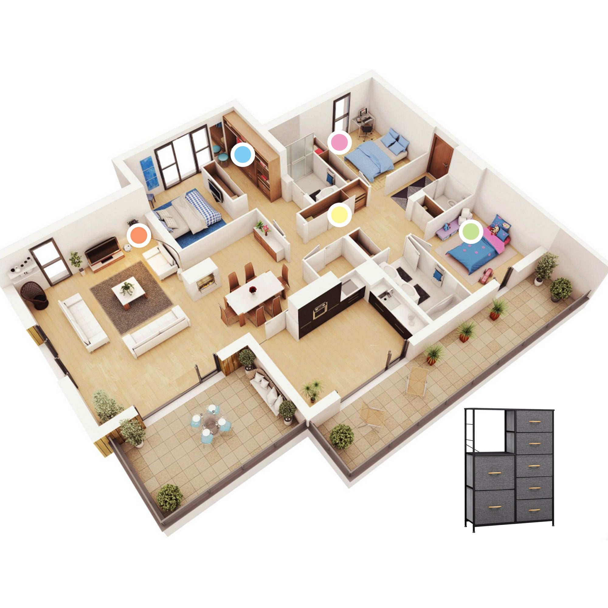 34" Gray and Black Steel and Fabric Seven Drawer Chest