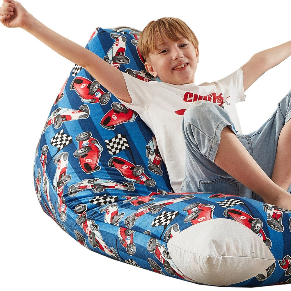 35" Blue and White Microfiber Specialty Sports Pouf Cover