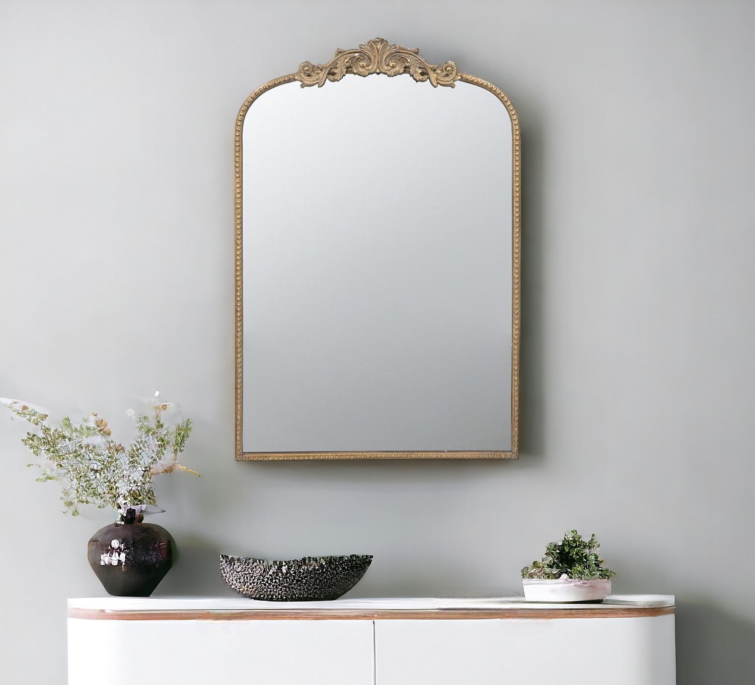 36" Gold Crowned Top Framed Accent Mirror
