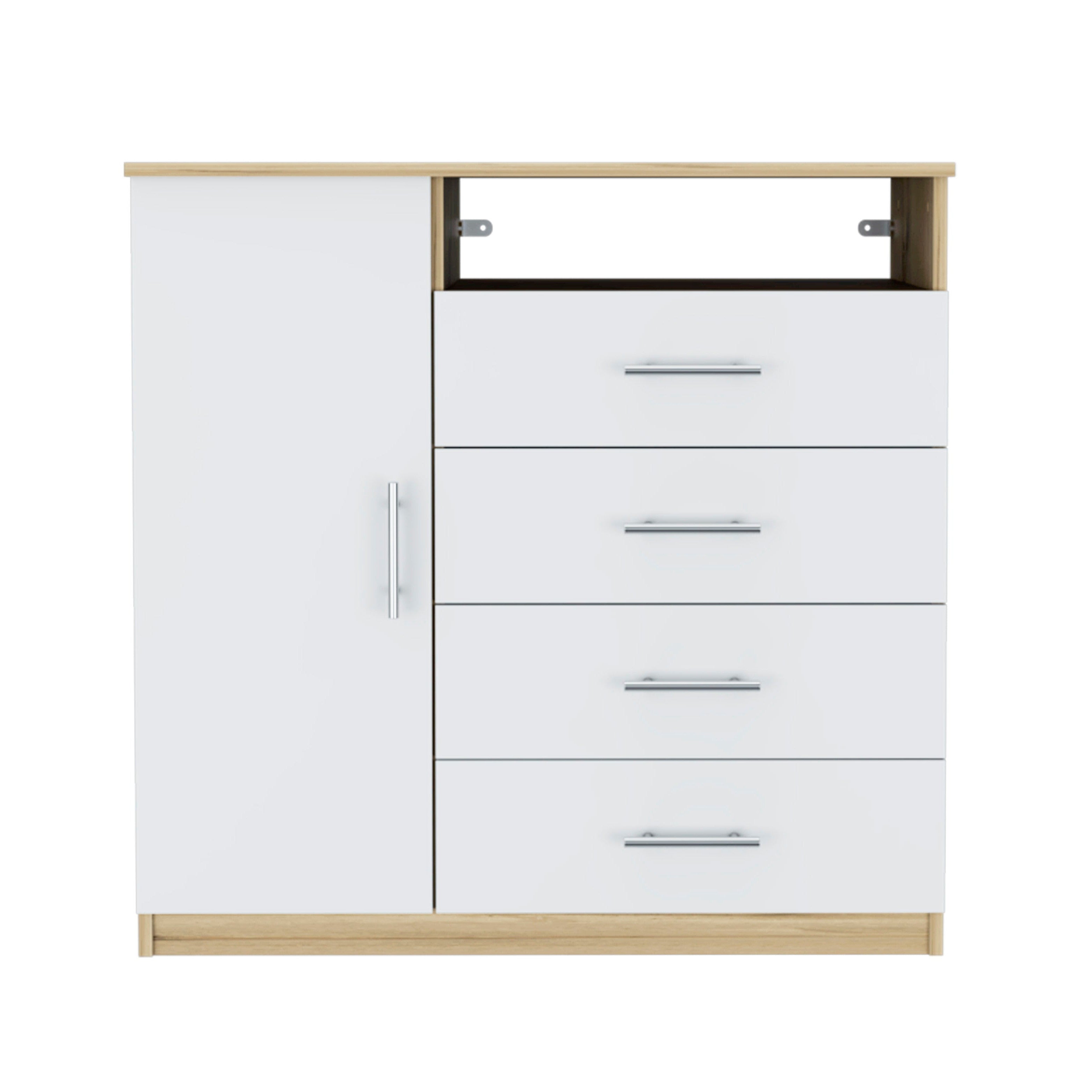 This 36-inch white and natural four drawer dresser is a practical and good looking accent for your...