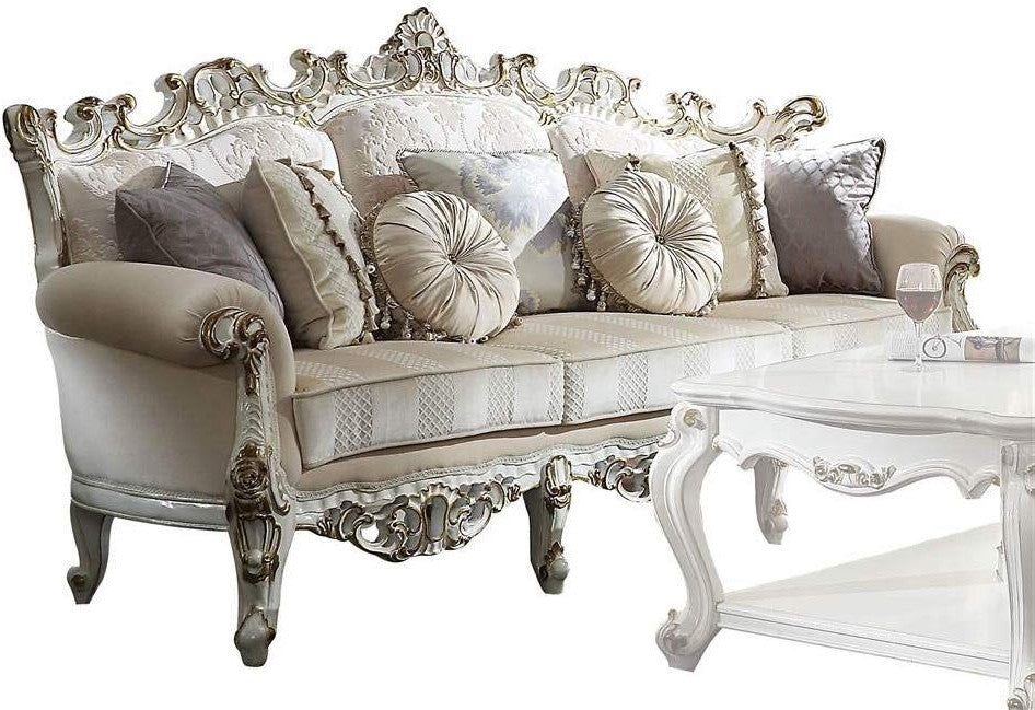 36" X 84" X 45" Fabric Antique Pearl Upholstery Poly-Resin Sofa w7 Pillows