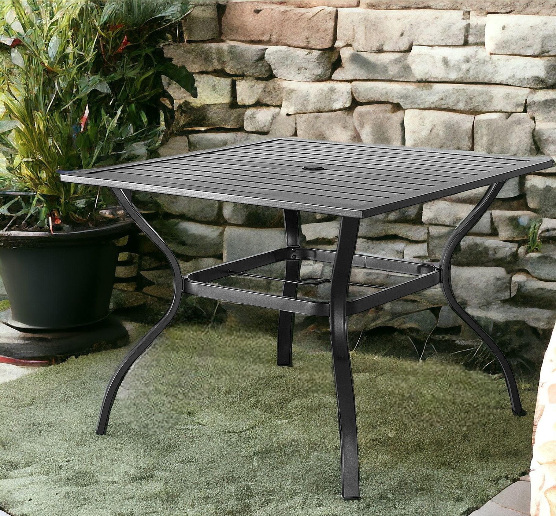 37" Black Square Metal Outdoor Dining Table With Umbrella Hole