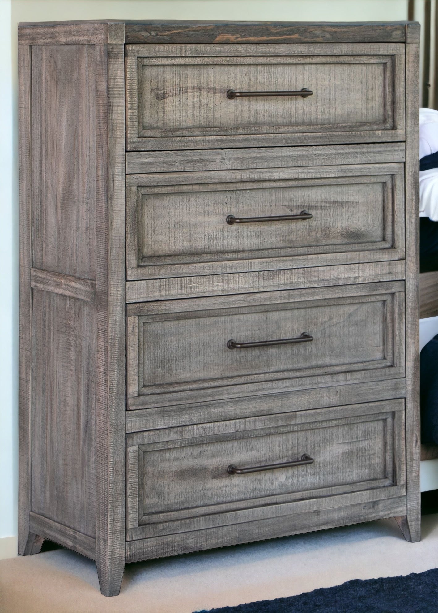 Make your room functional and visually enticing with this masterful 37" brown solid wood four drawer standard...