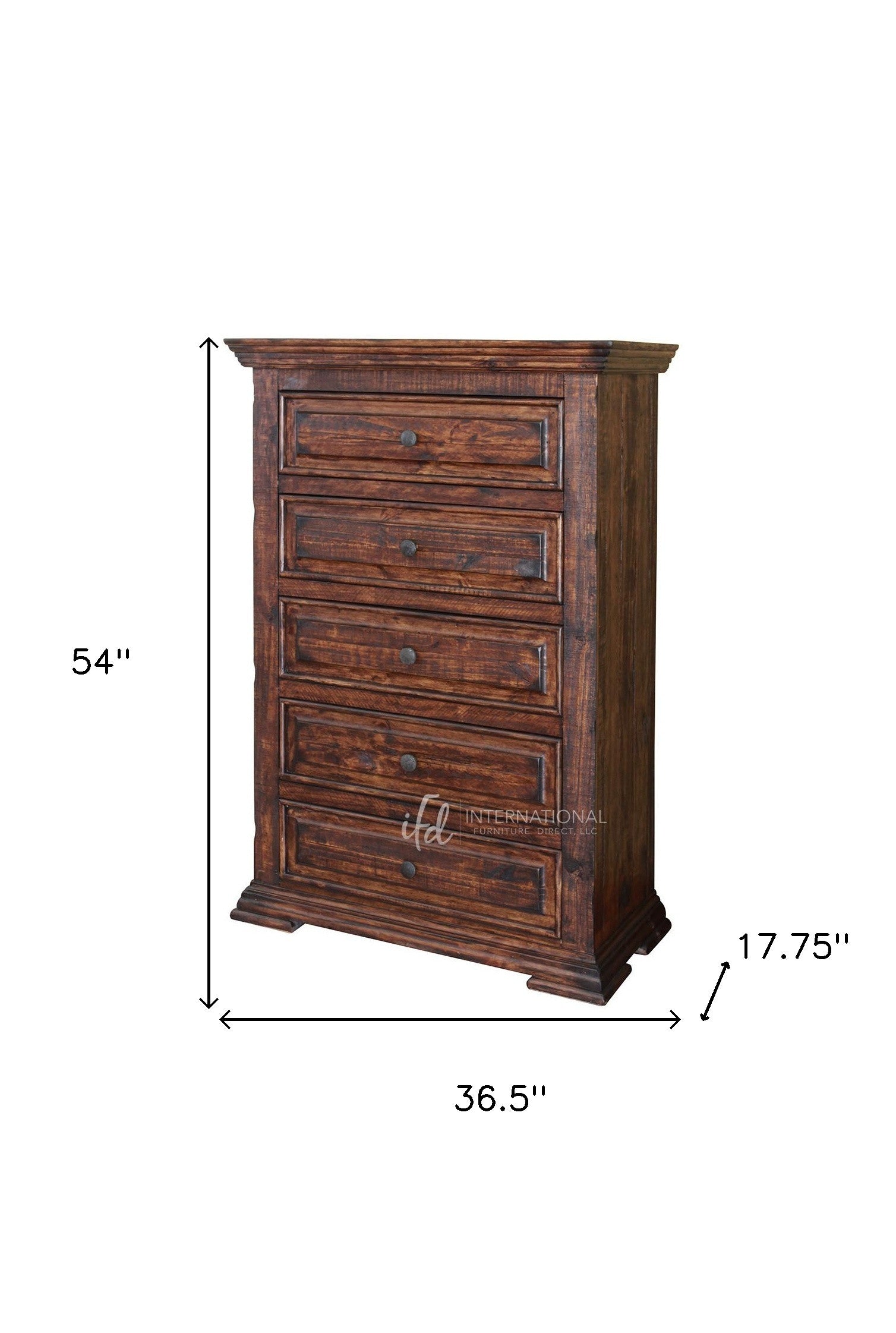 Make your room functional and visually enticing with this masterful 37" chocolate solid wood five drawer standard...