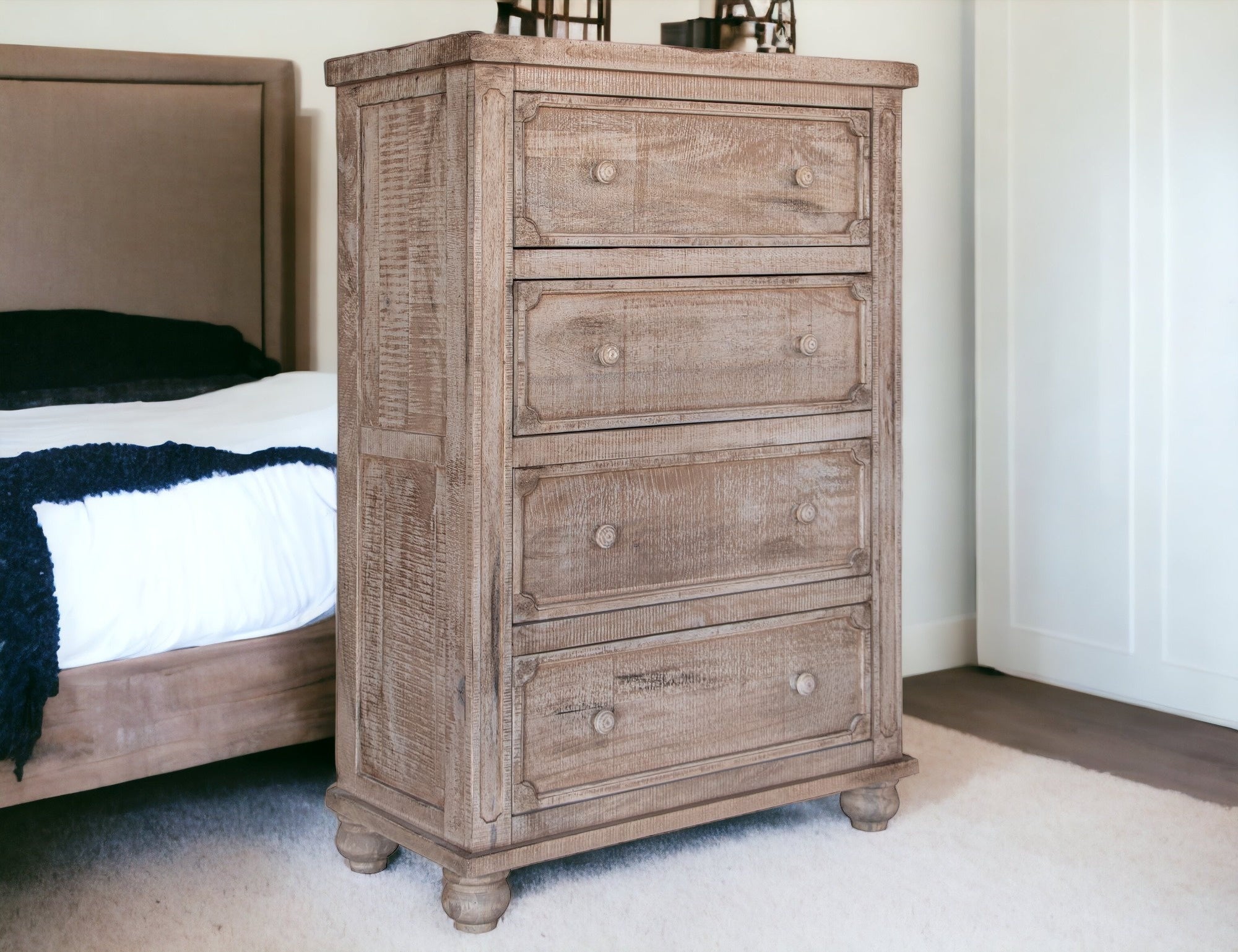 Make your room functional and visually enticing with this masterful 37" natural solid wood four drawer standard...