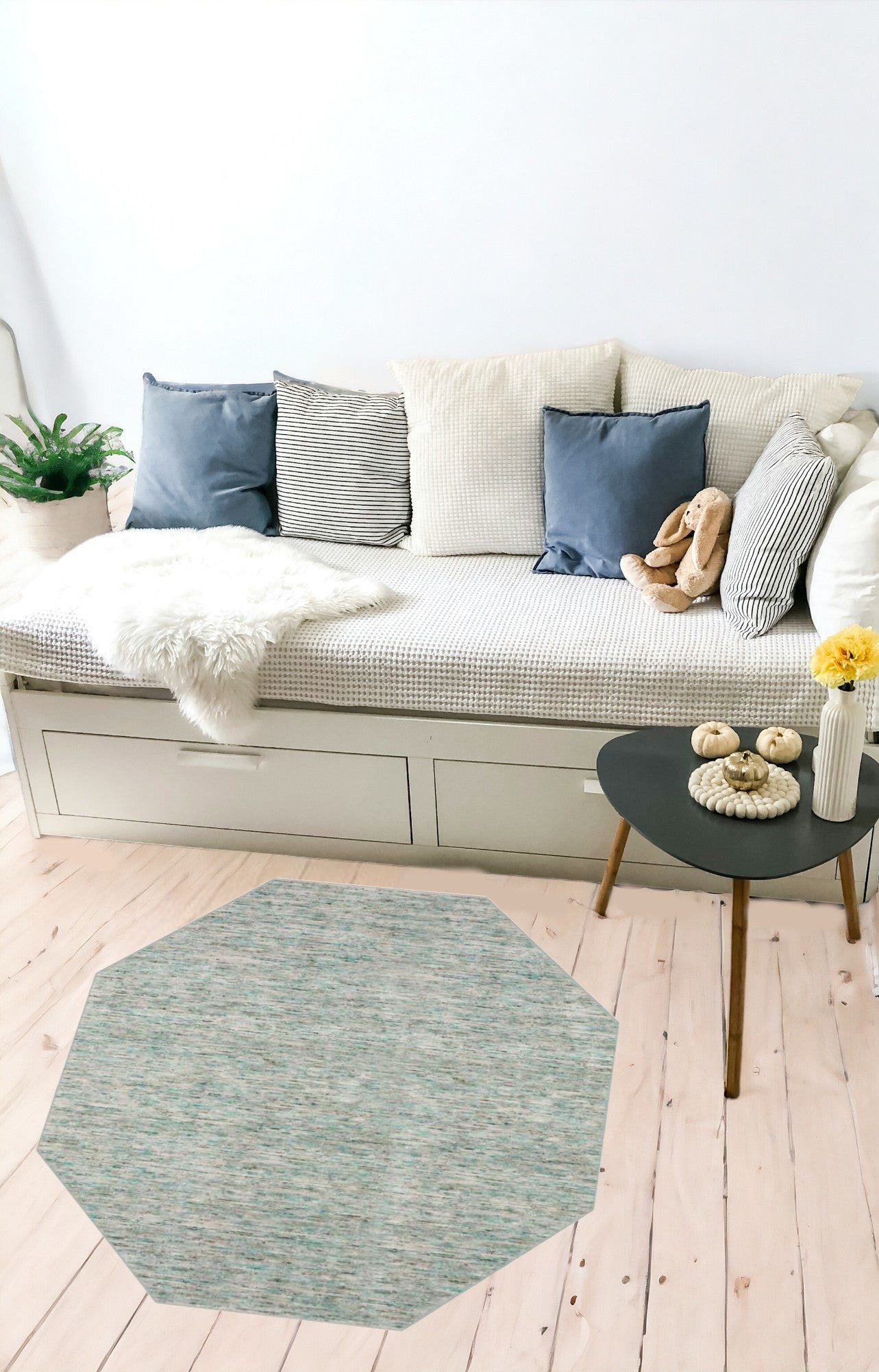 4' Green and Ivory Octagon Wool Hand Loomed Area Rug