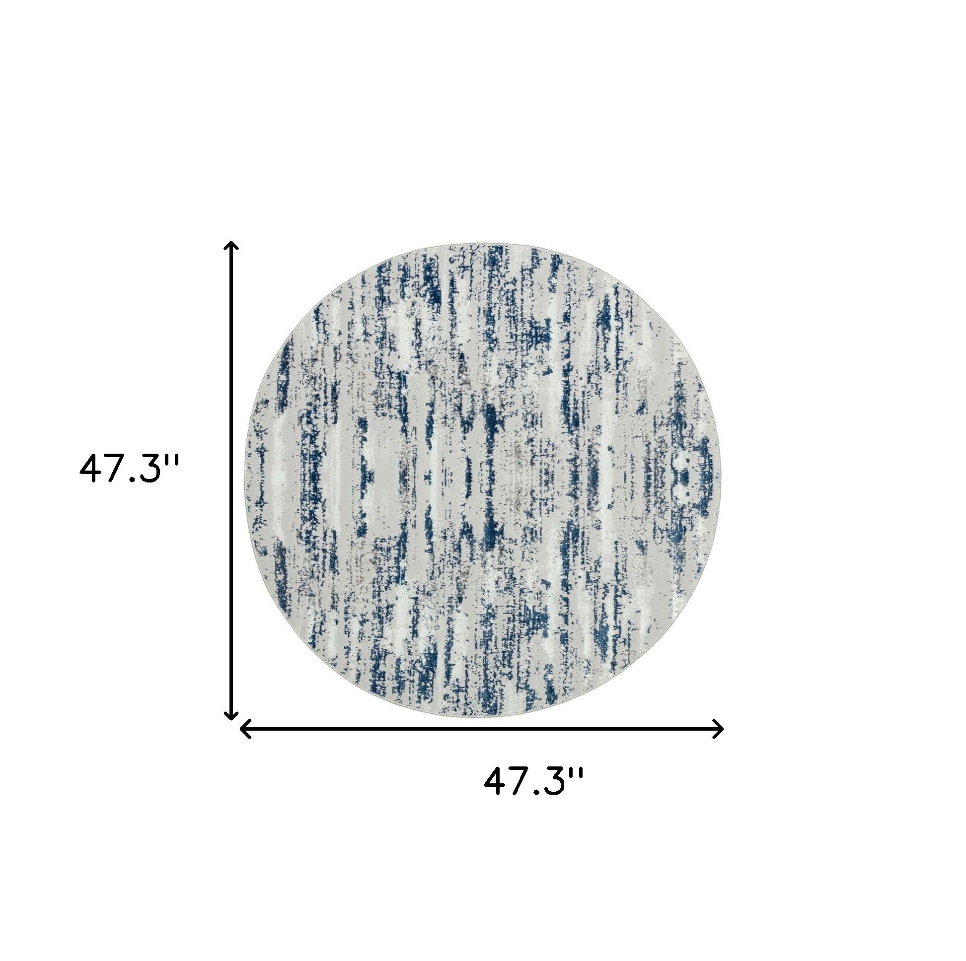 4' Navy Blue Round Abstract Washable Non Skid Area Rug
