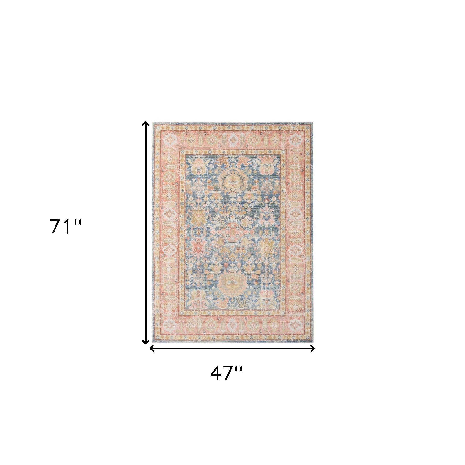 Set an inviting tone in your space with this 4 feet x 6 feet blue floral power...