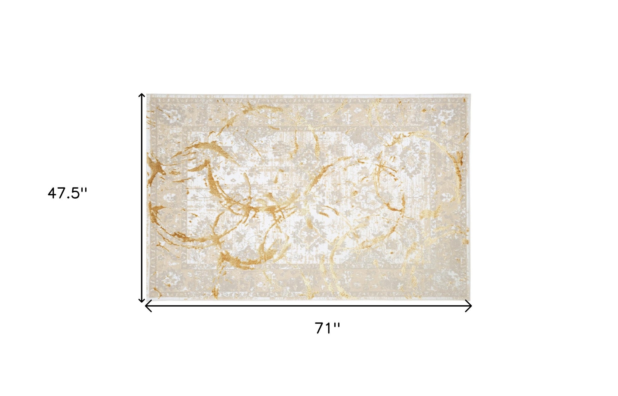 This 4-foot x 6-foot gold abstract area rug, is a great way to add warmth to a...