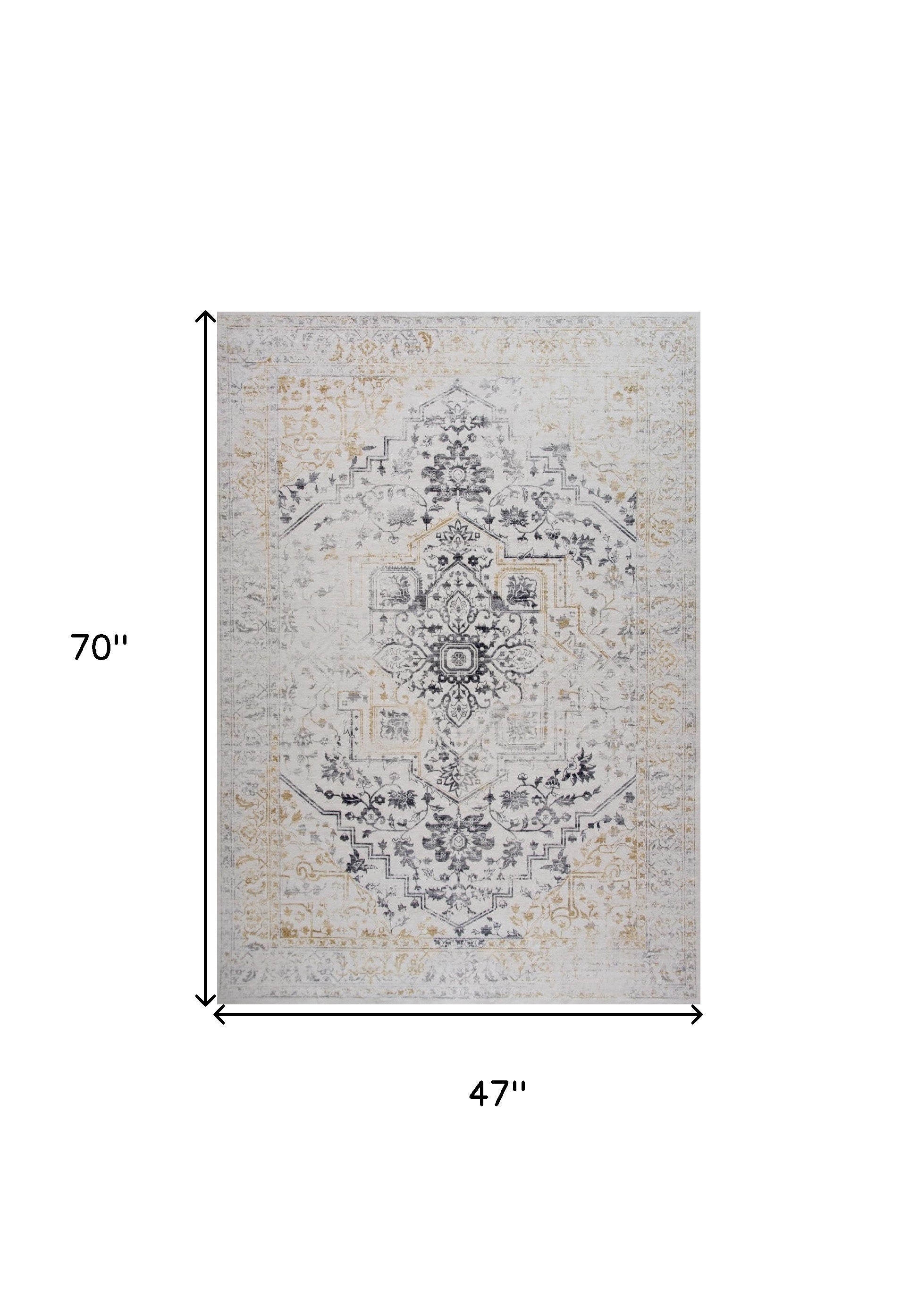 Set an inviting tone in your space with this 4-foot x 6-foot gray and gold oriental area...