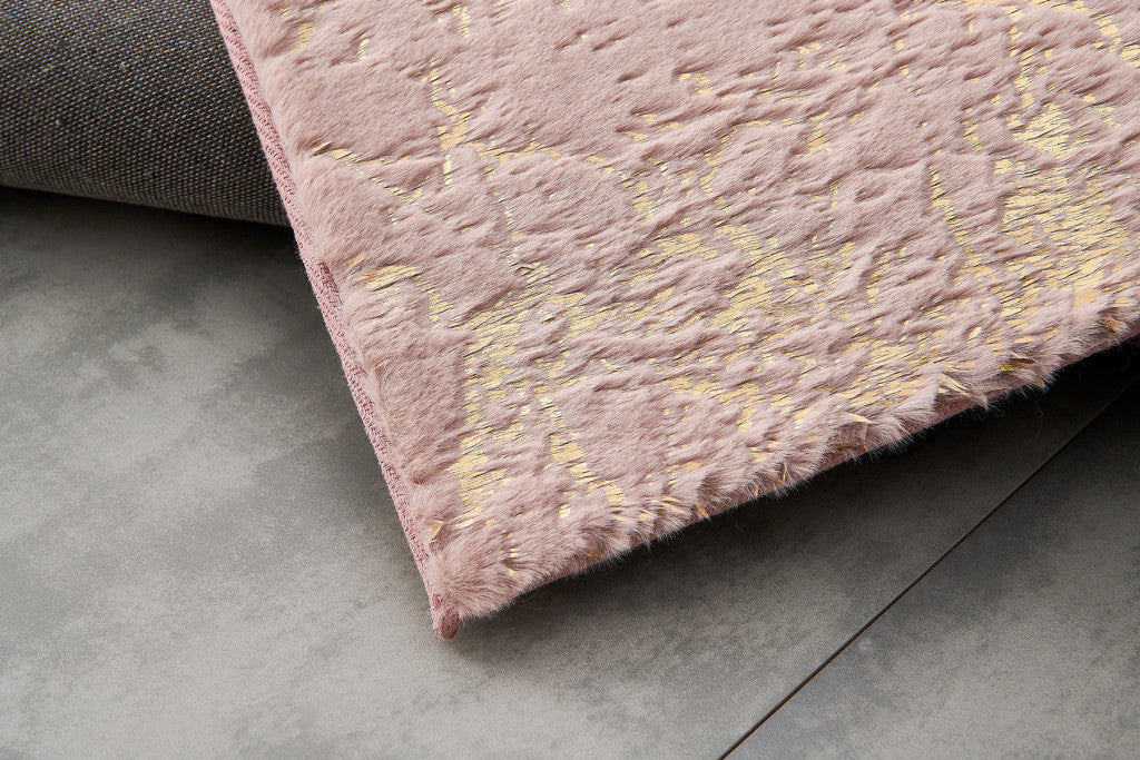 Set an inviting tone in your space with this 4-foot x 6-foot pink and gold faux fur...