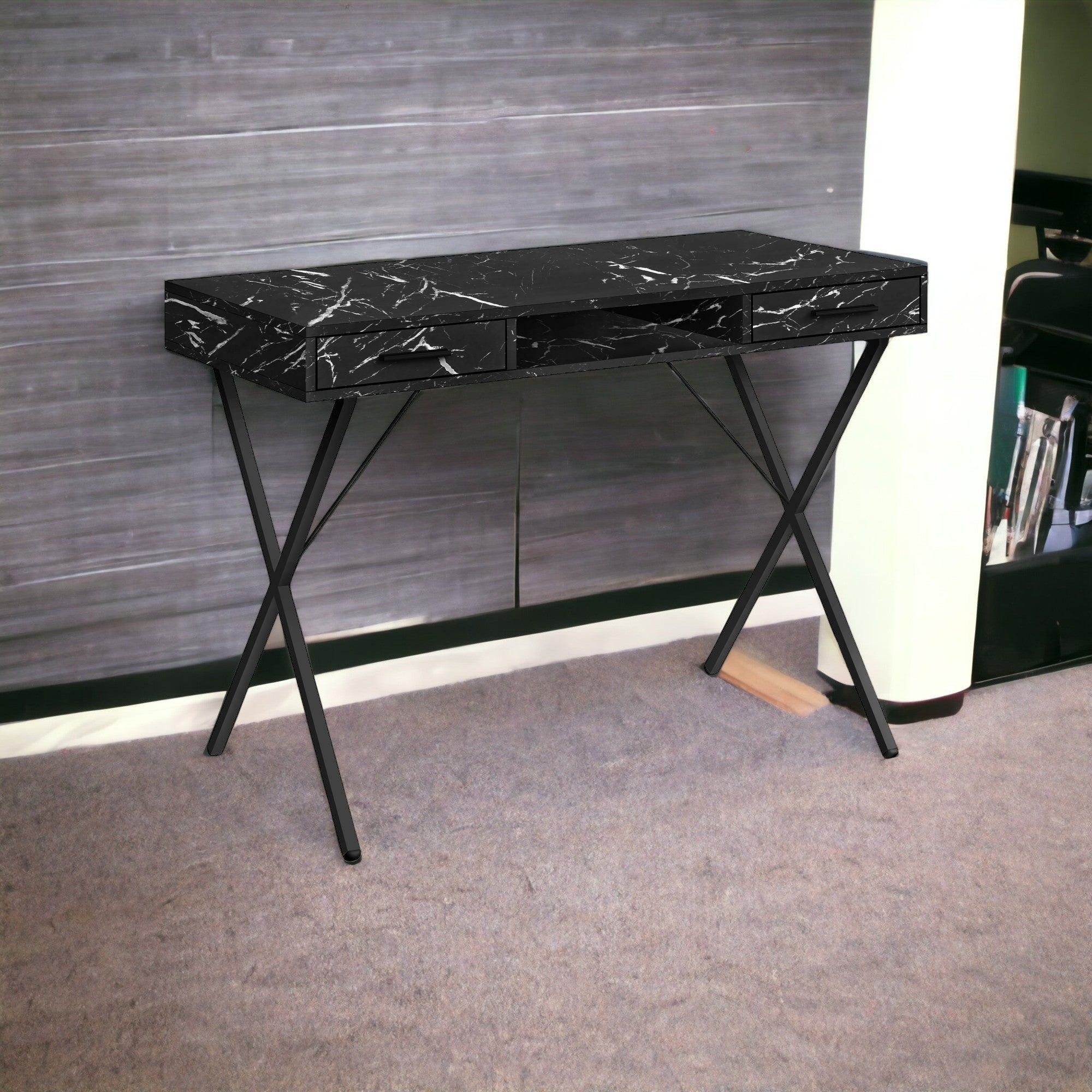 42" Black and White and Black Computer Desk With Two Drawers