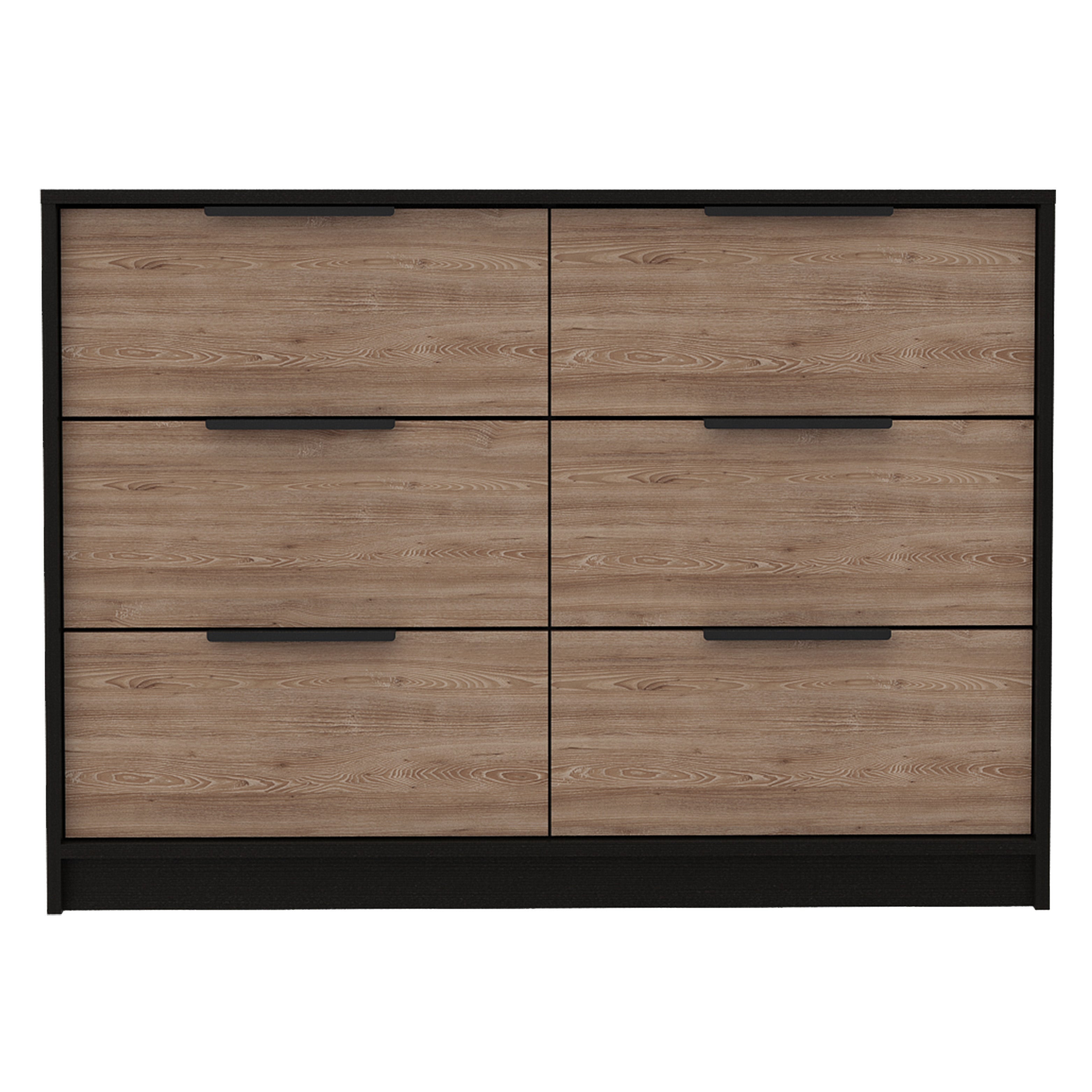 42" Brown and Black Six Drawer Double Dresser