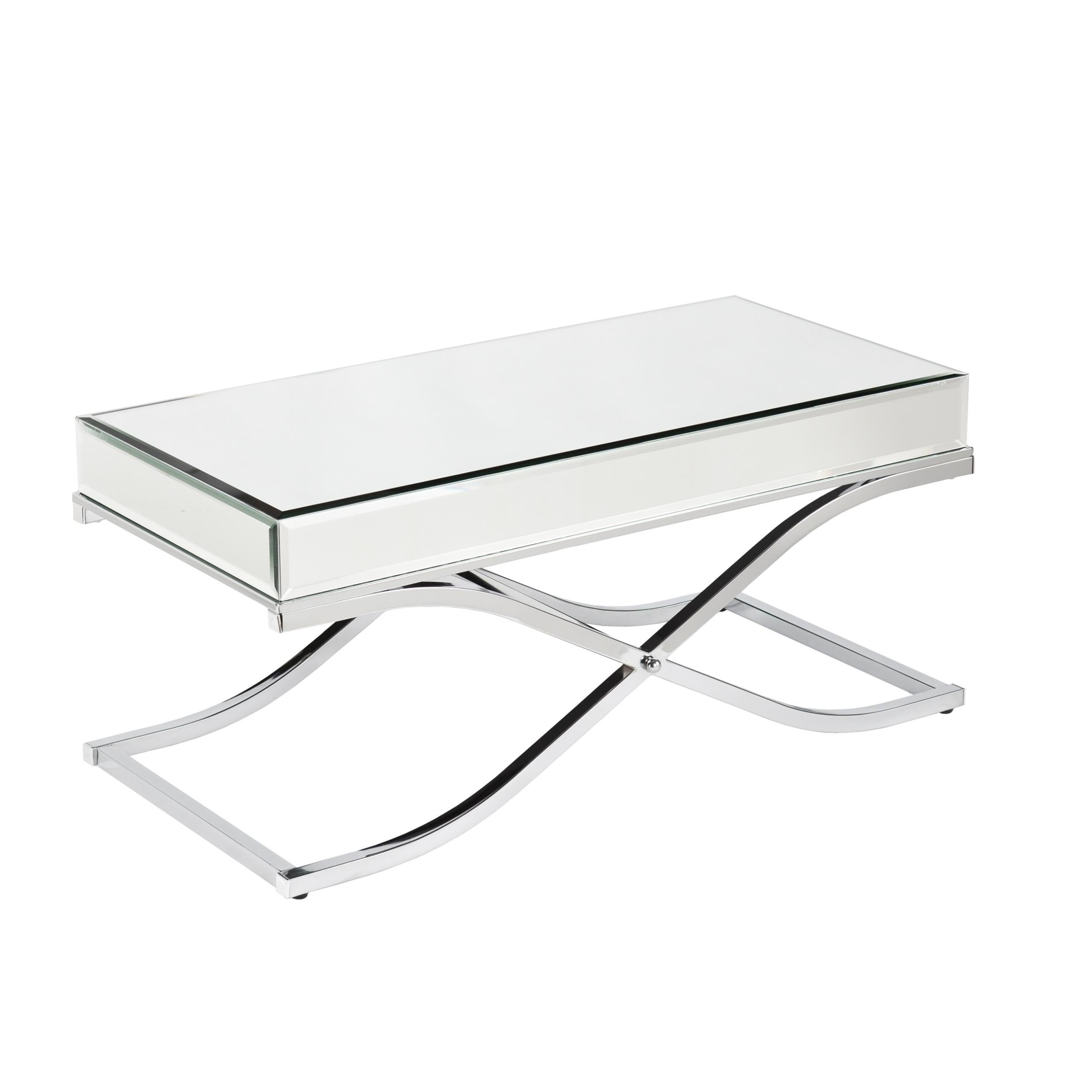 42" Silver Mirrored And Metal Rectangular Mirrored Coffee Table