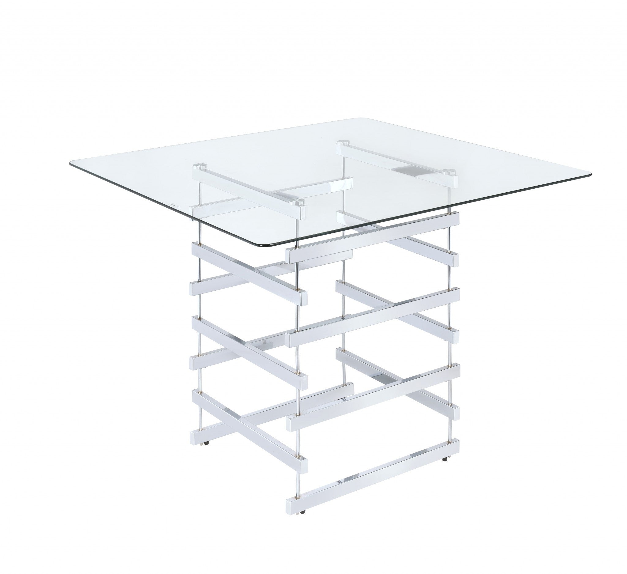 42" X 42" X 36" Clear Glass And Chrome Counter Height Table