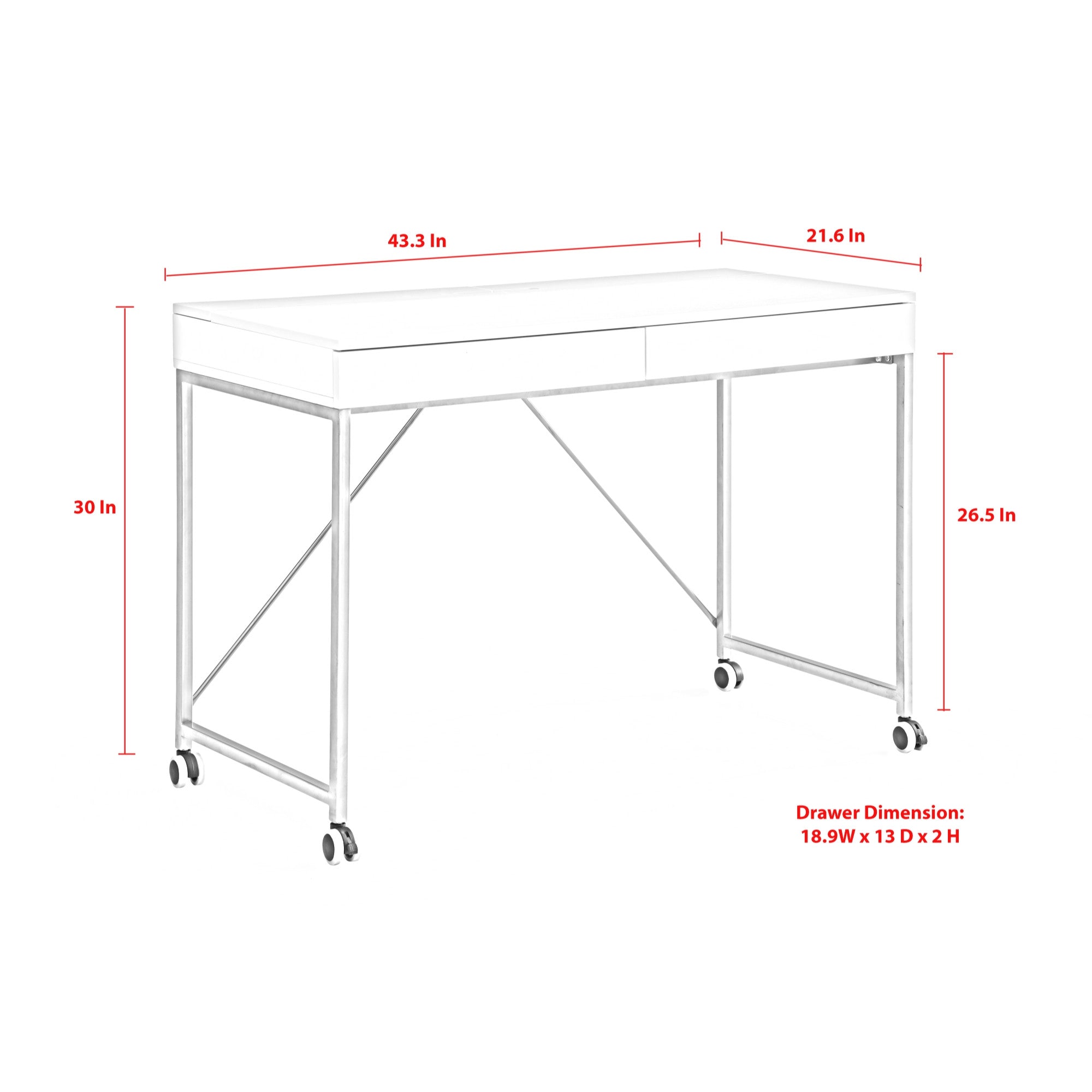 43" White and Black Writing Desk With Two Drawers