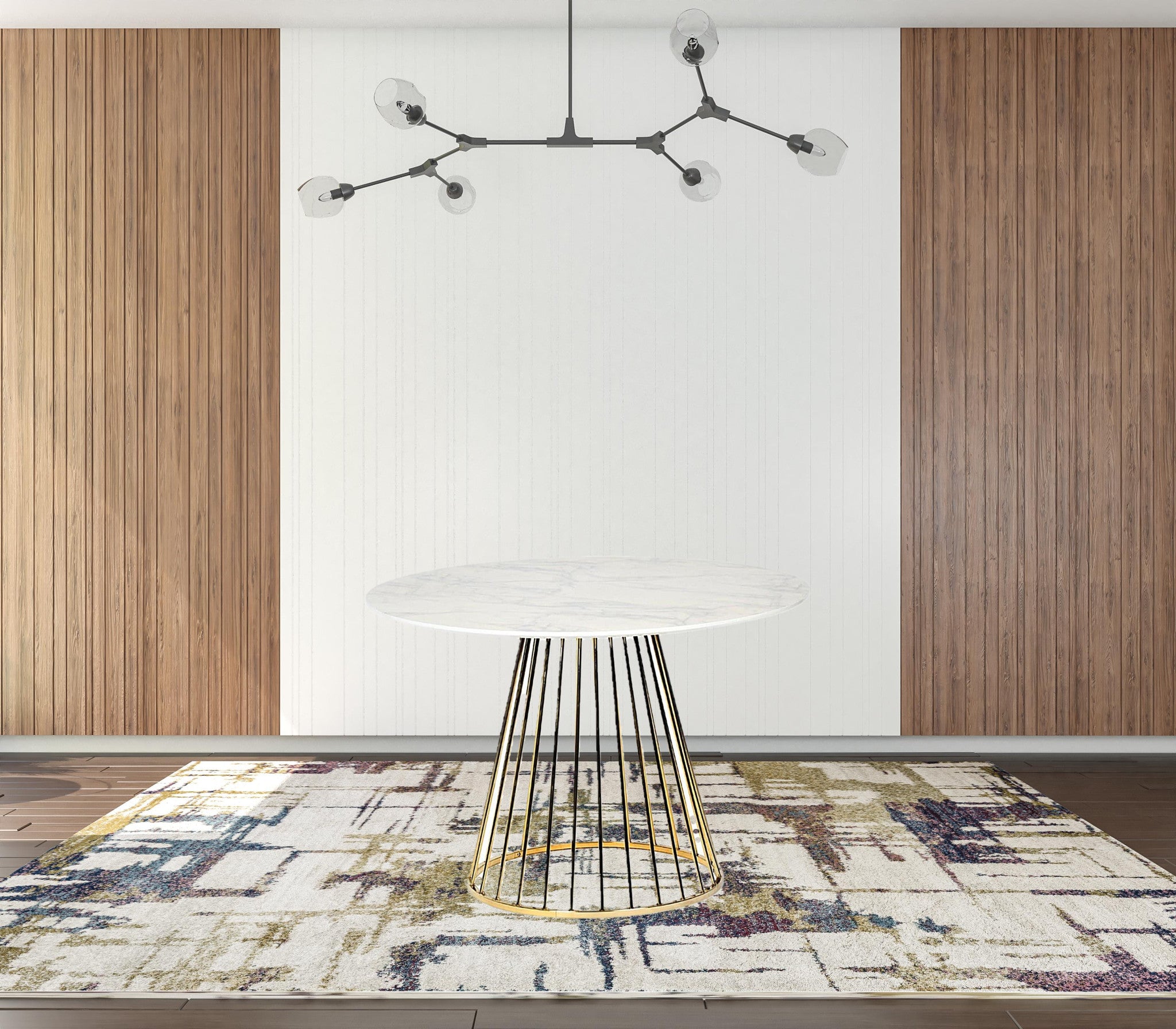 43" White And Gold Rounded Manufactured Wood And Stainless Steel Dining Table