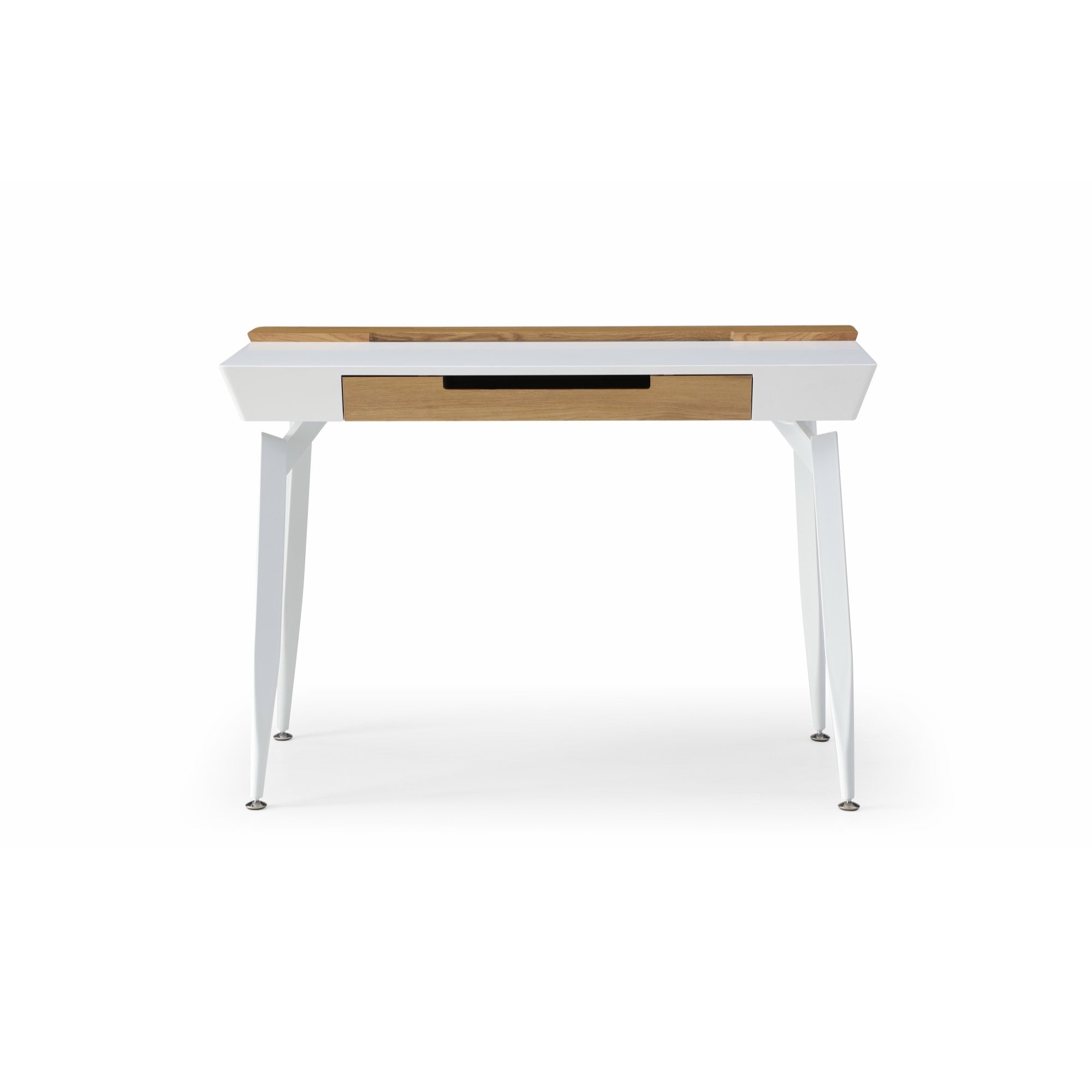 44" White and Natural Writing Desk With Three Drawers