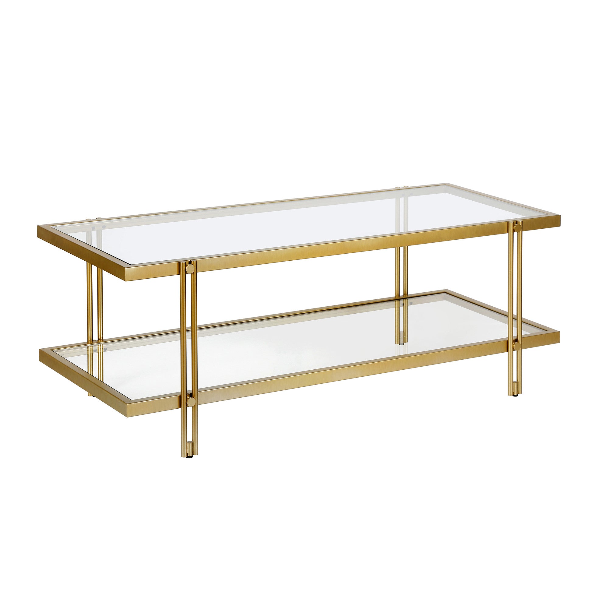 45" Gold Glass Rectangular Coffee Table With Shelf