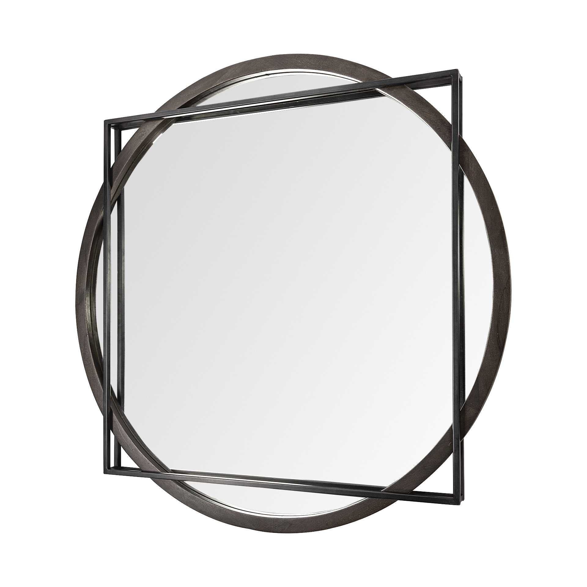 Spectacular Round on Square Black Wood And Metal Frame Wall Mirror that will be an eye-catching piece...