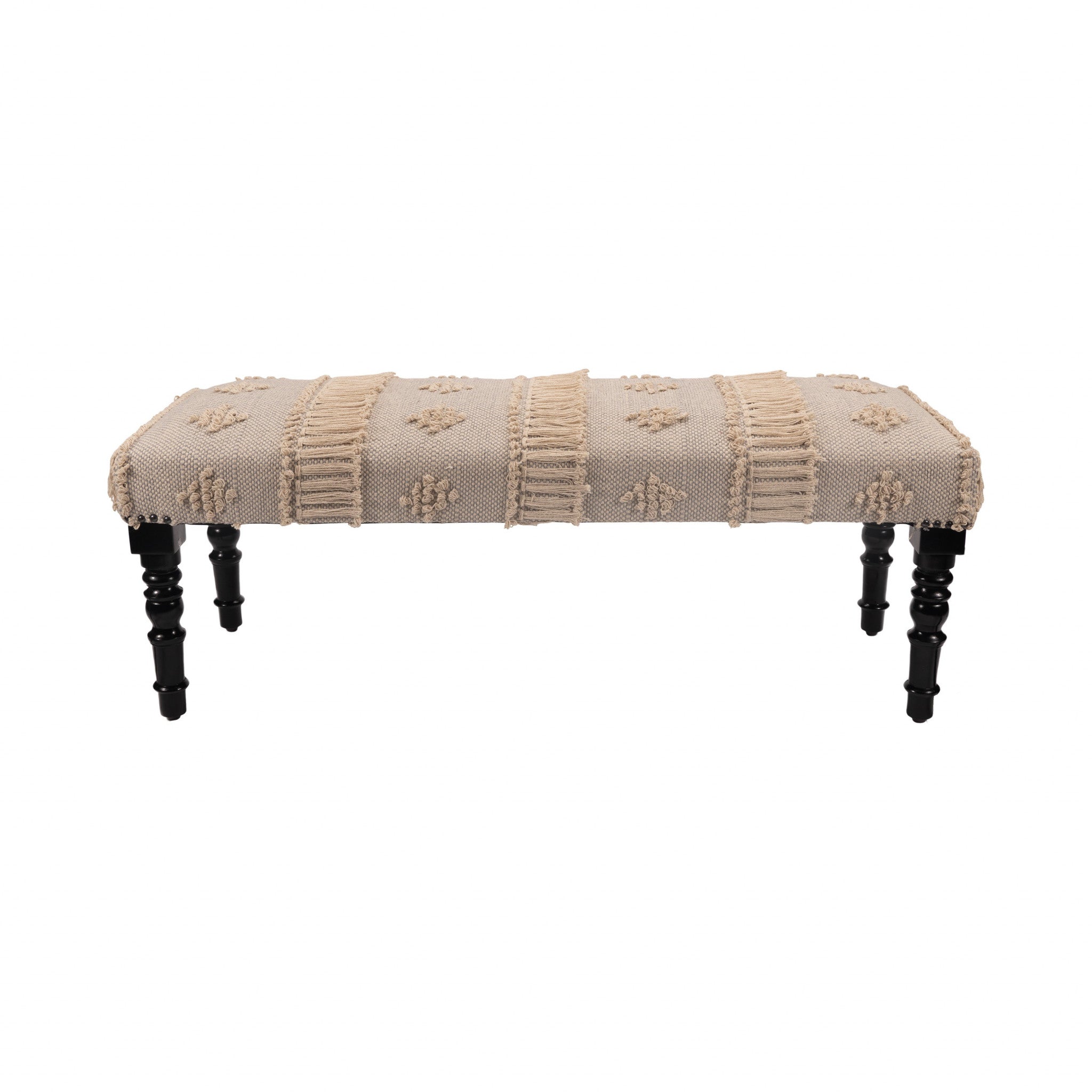 47" Cream And Black Leg Abstract Stripe and Dot Upholstery Bench
