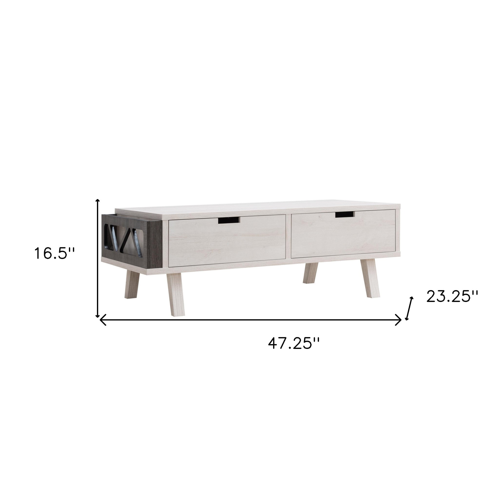47" Gray Distressed Coffee Table With Two Drawers And Shelf