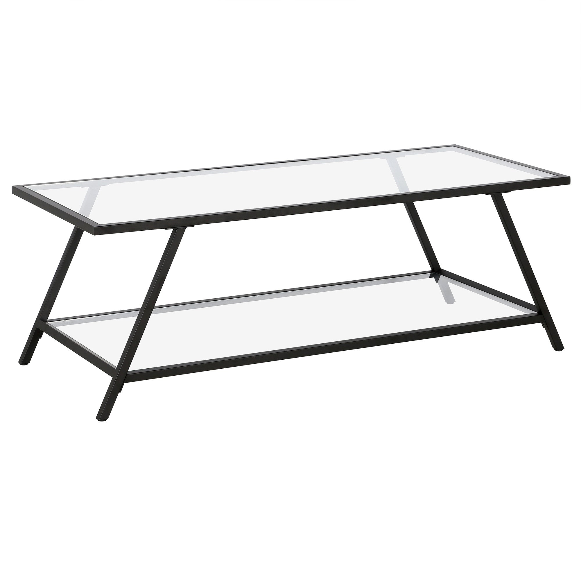 A solid black steel frame is finished off with a matching black glass top, giving this table...