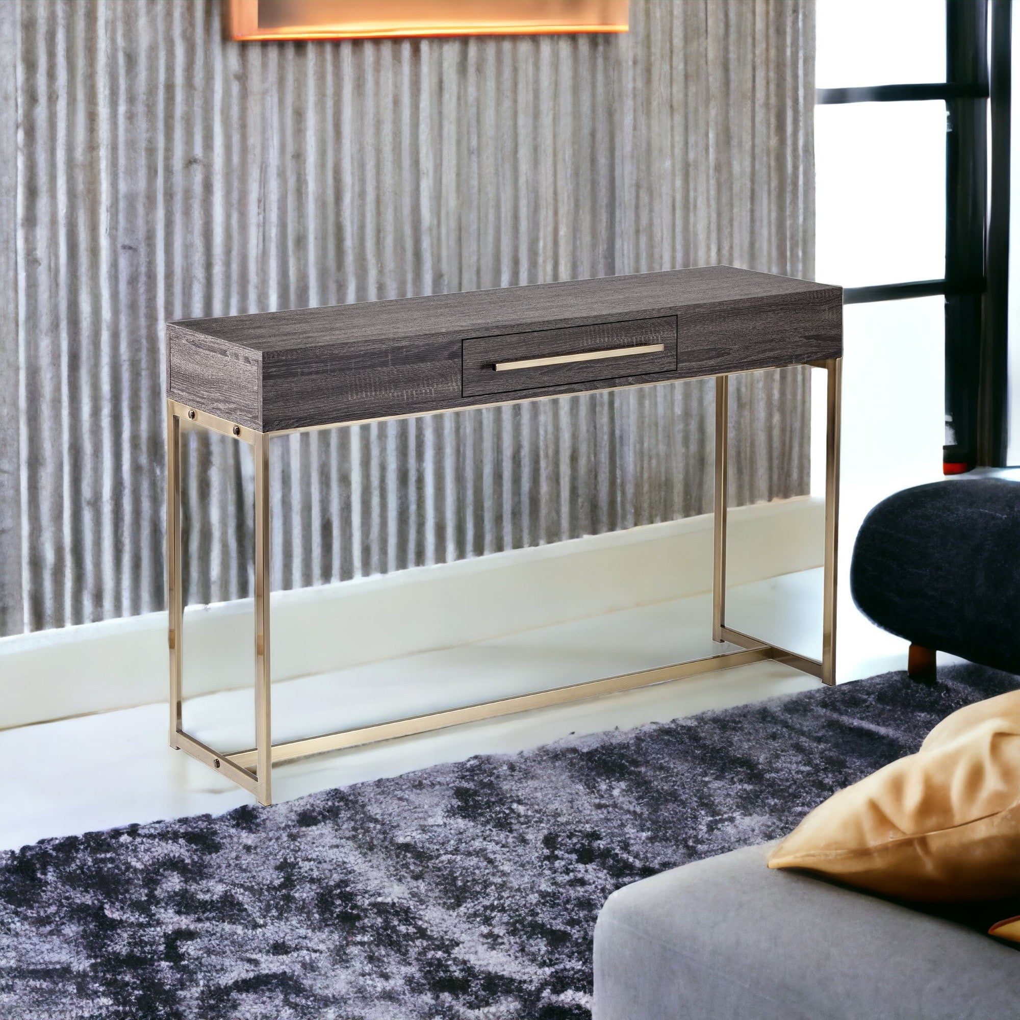 Transform your home with our elegant and versatile 48-inch gray and gold sled console table with storage....