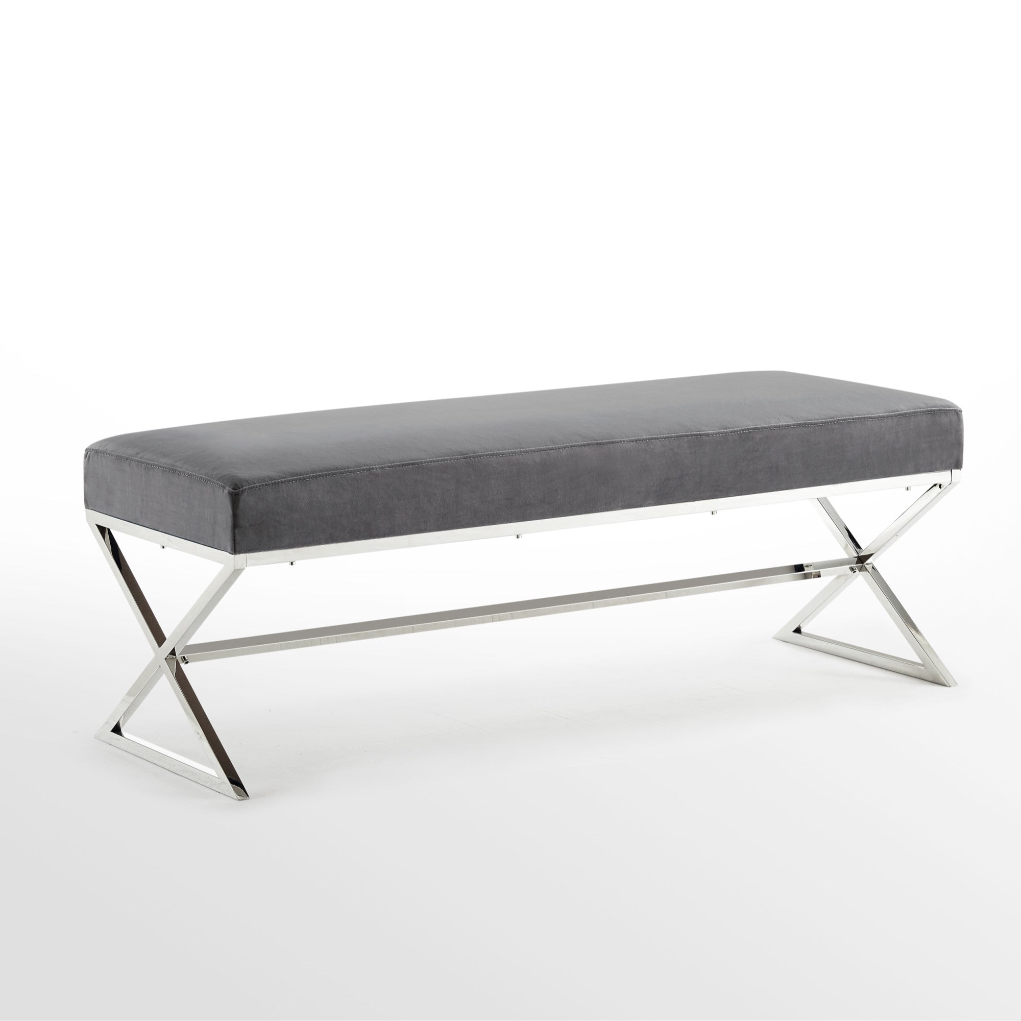 Distinctive in style the 48" gray and silver upholstered velvet bench radiates a versatile charm. The gray...
