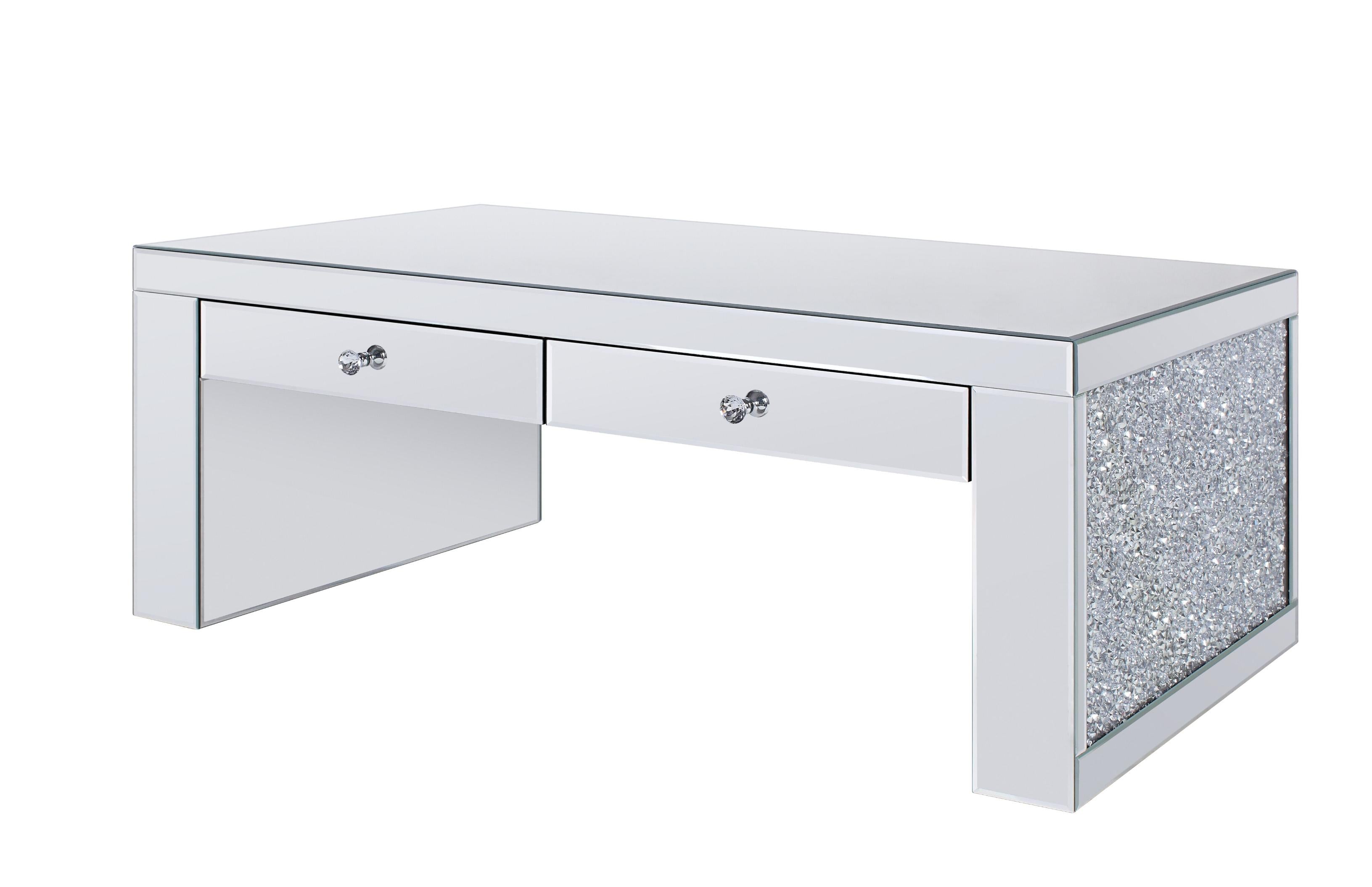 48" Mirrored Mirrored Rectangular Mirrored Coffee Table With Two Drawers