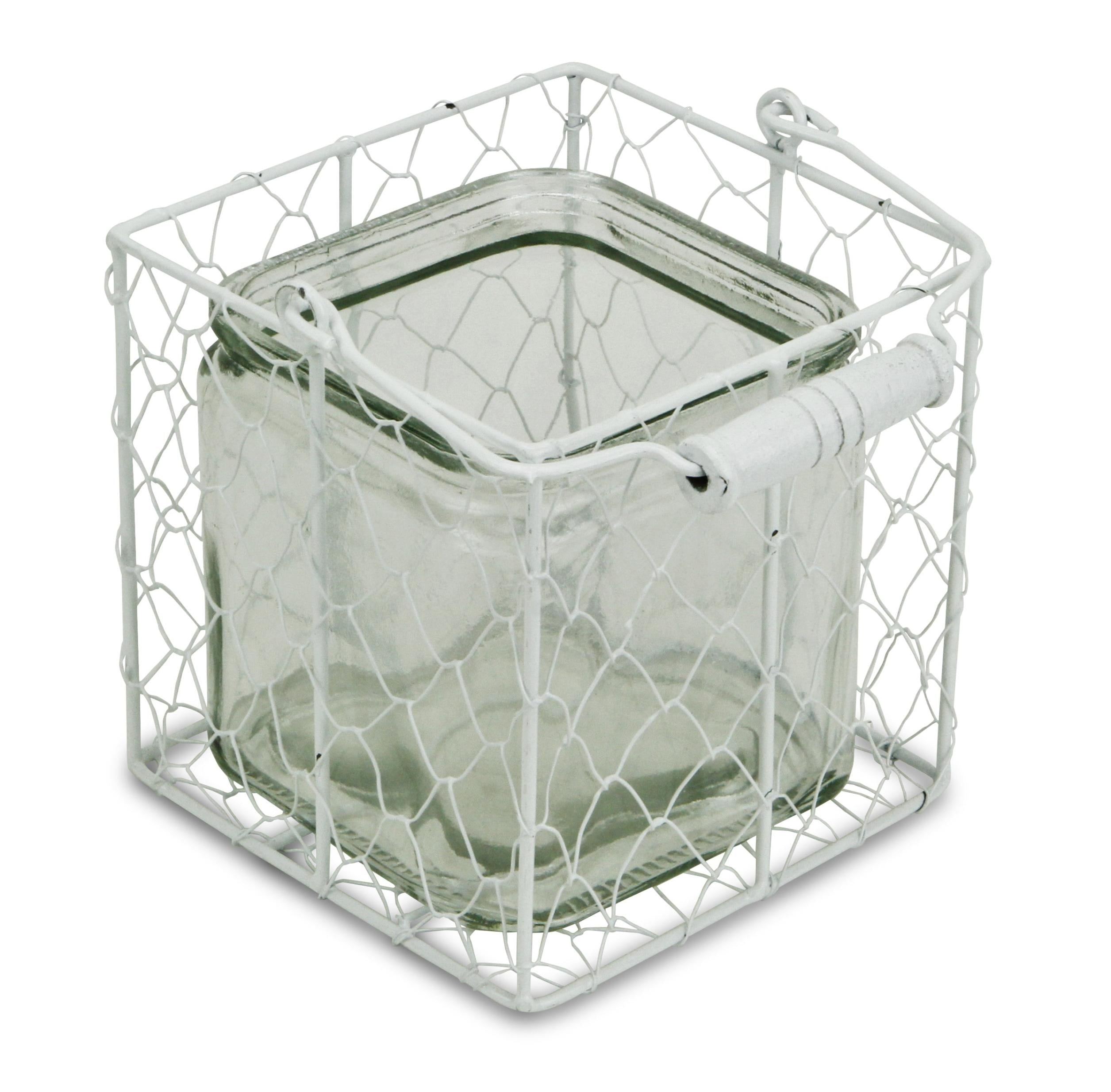 Unique and decorative, this 6" white and clear wire basket and glass jar will leave a lasting...