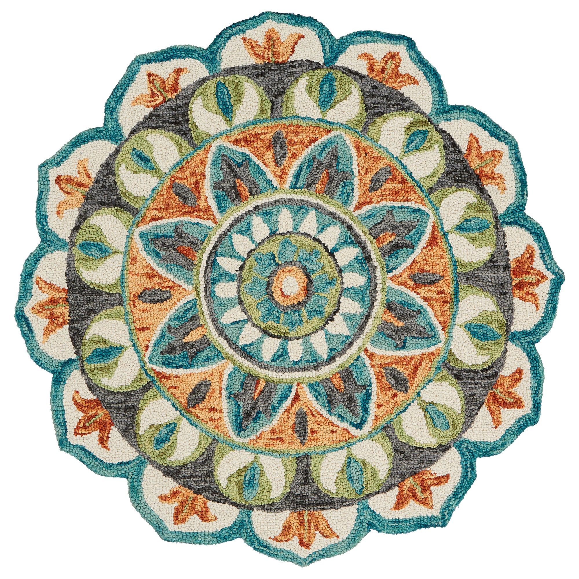 Set an inviting tone in your space with this 5-foot blue and ivory round wool floral hand...